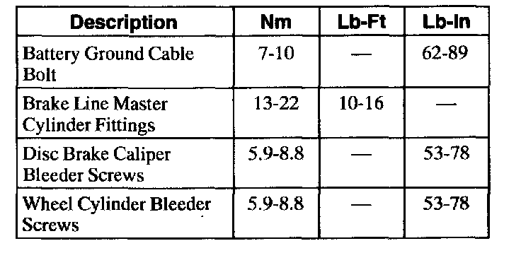 Torque Specifications