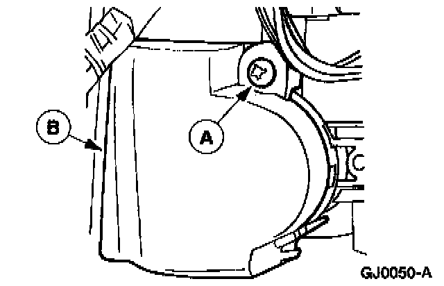4. Remove the (A) screw and remove the (B) ignition switch electrical connector cover.