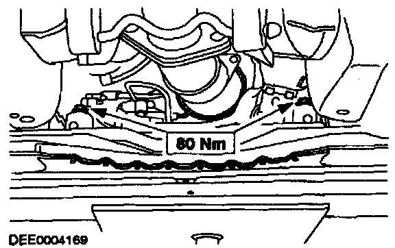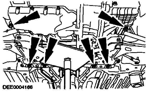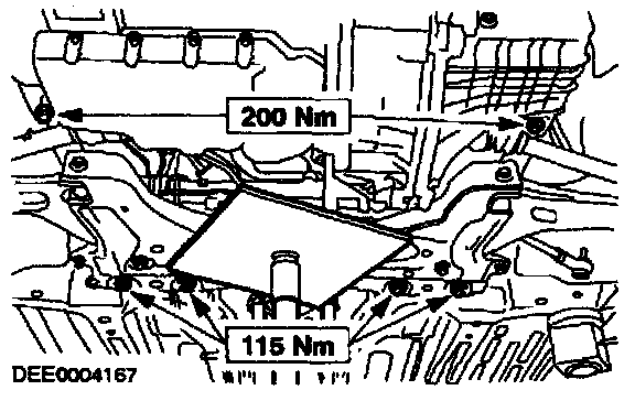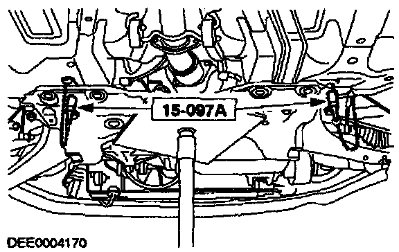 1. Position the subframe using the transmission jack and insert the guide pins.