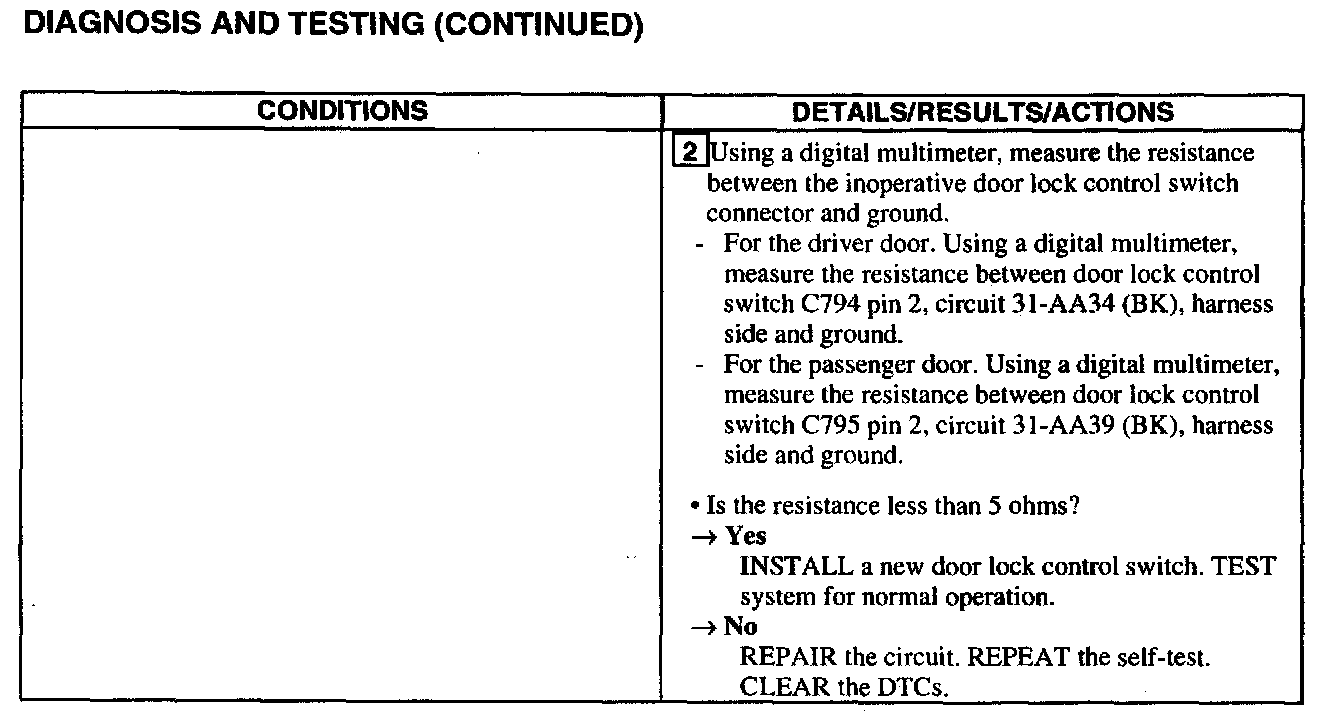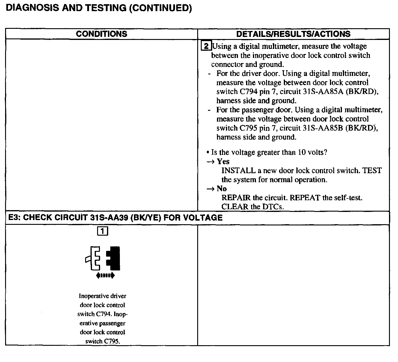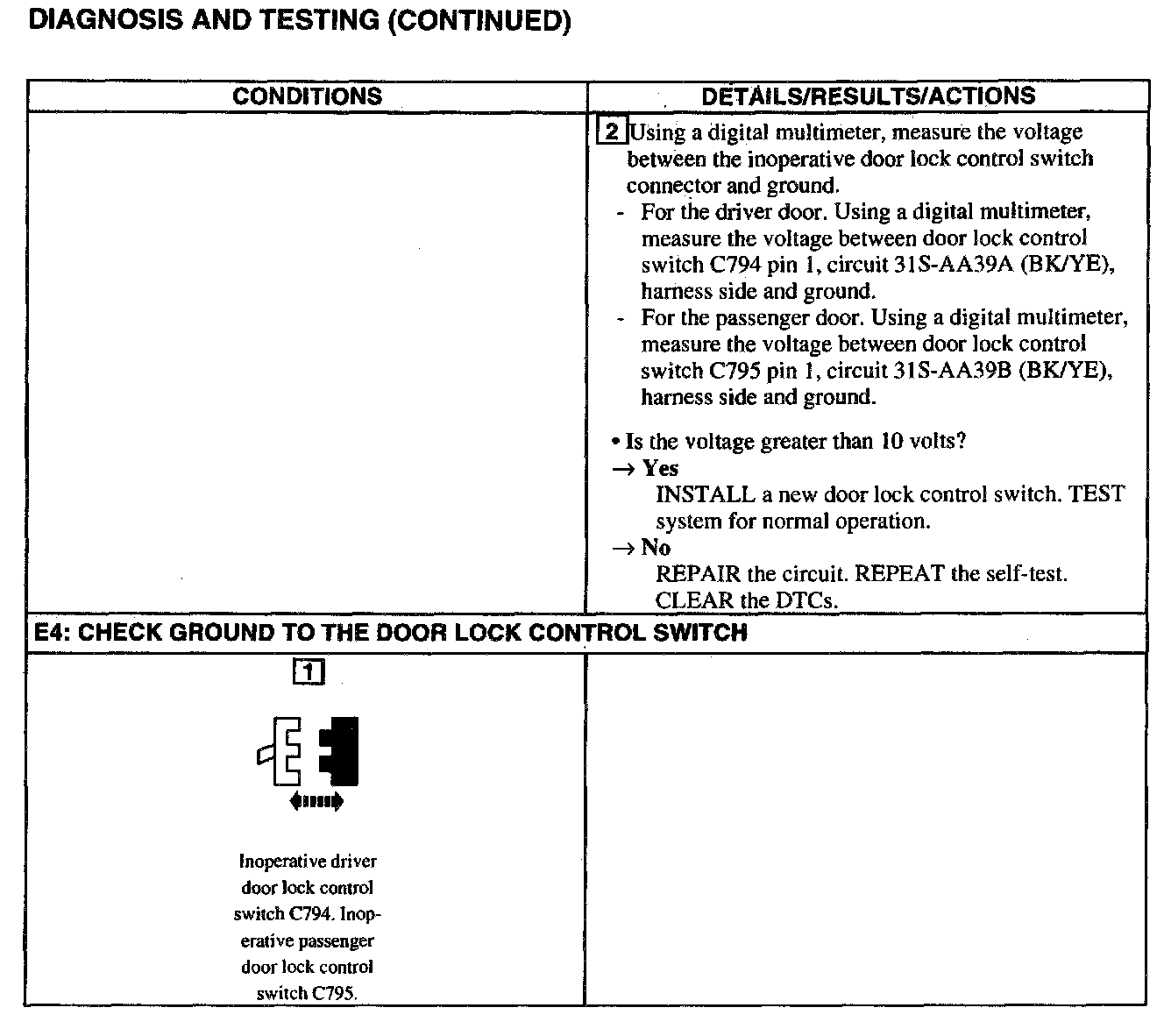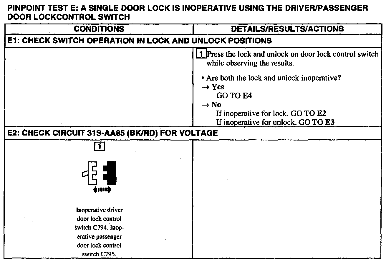 Test E: Door Lock Inoperative Using Driv/Pass Lock Control Switch