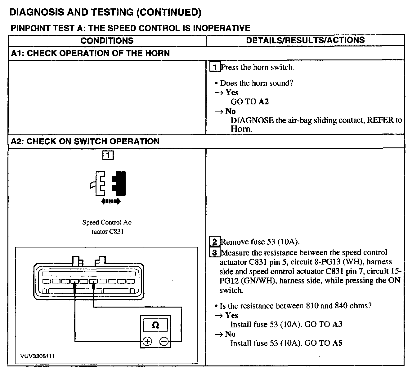 Test A: Speed Control Is Inoperative
