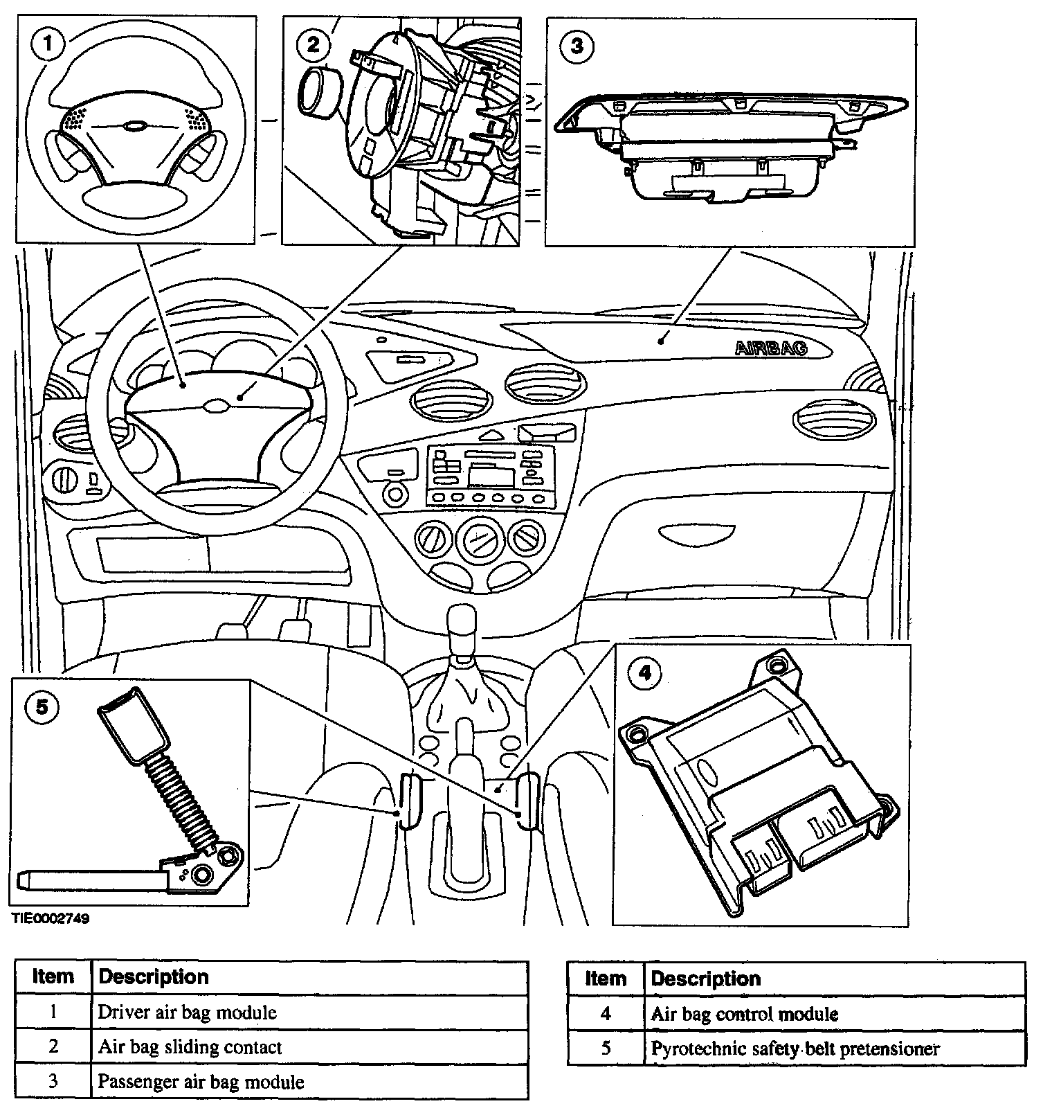 Air Bag and Safety Belt Pretensioner Supplemental Restraint System (SRS):