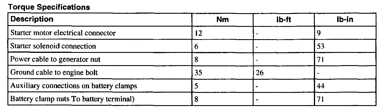 Torque Specifications: