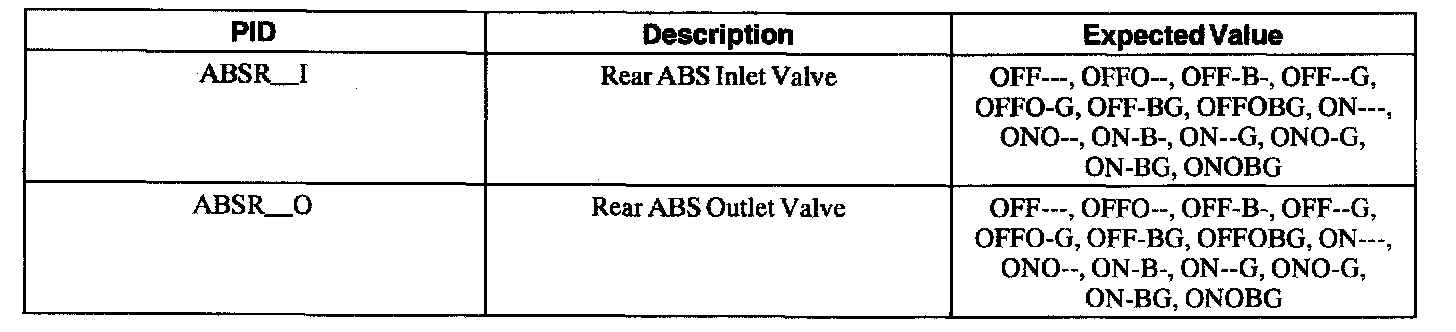 ABS Control Module Parameter Identification (PID) Index