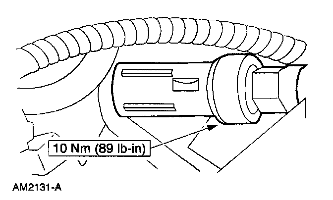 - Lubricate the O-ring seal with PAG Compressor Oil, YN-12c, F7AZ-19589-DA or equivalent meeting Ford specification WSH-M1C231-B.
