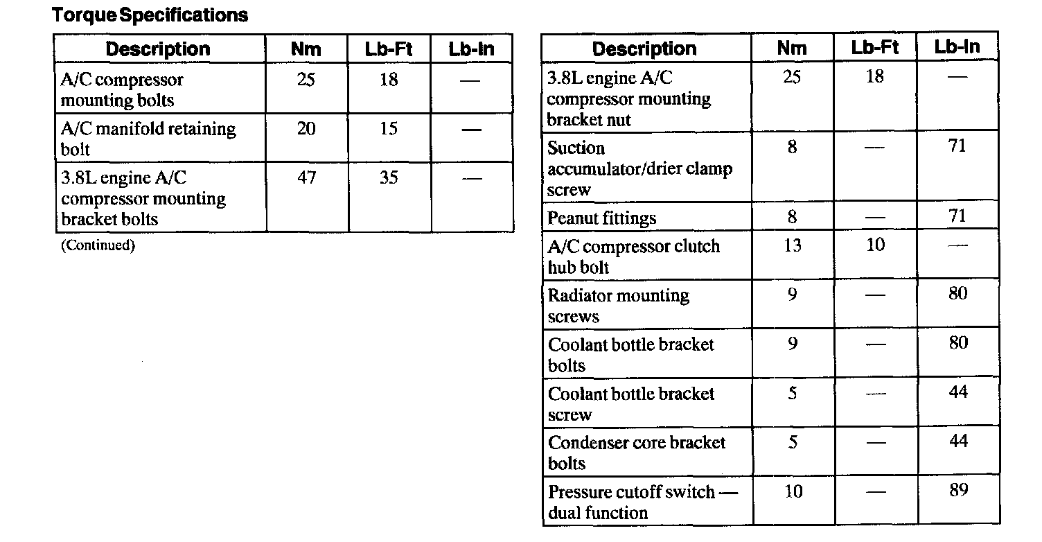 Torque Specifications: