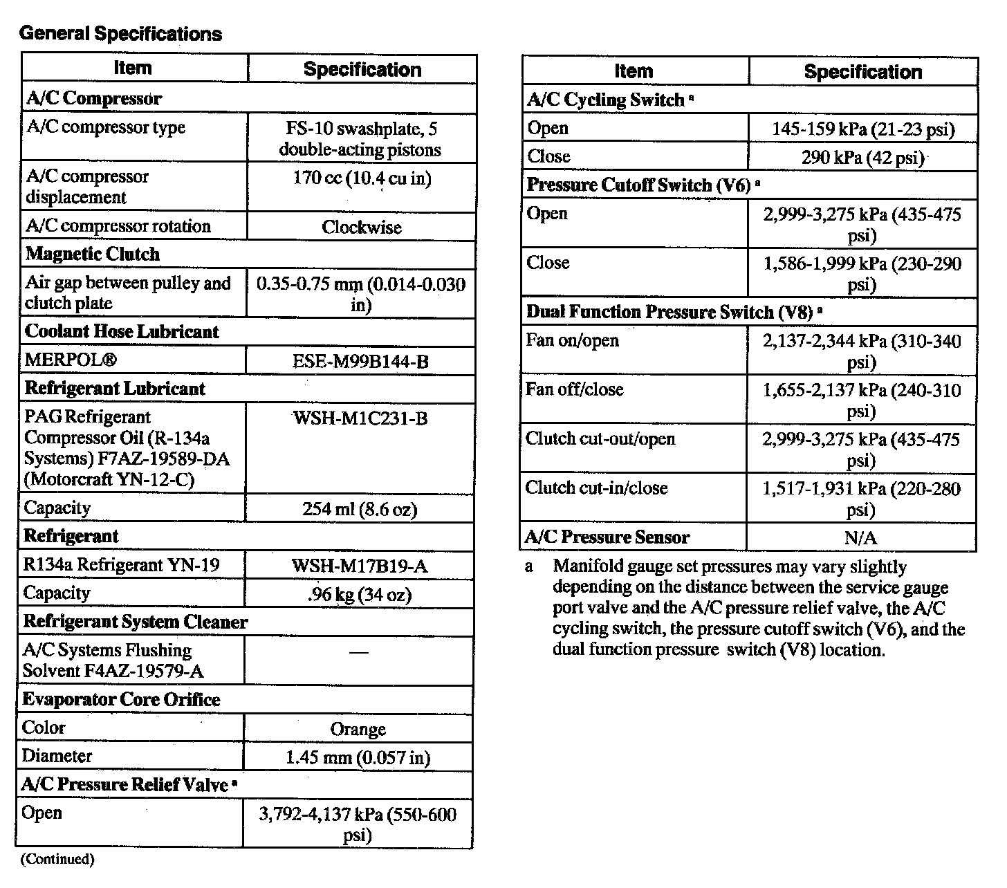 General Specifications: