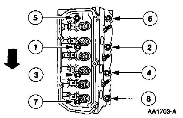NOTE: The short bolts are numbered 2, 4, 6 and 8 and the long bolts are numbered 1, 3, 5 and 7..