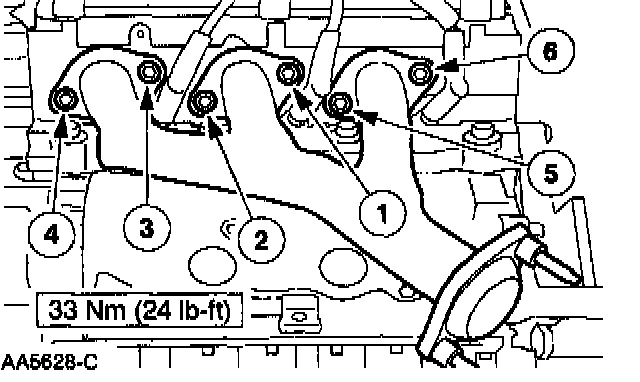 - Tighten long bolts to 45 Nm (33 ft. lbs.), then tighten an additional 180 degrees.