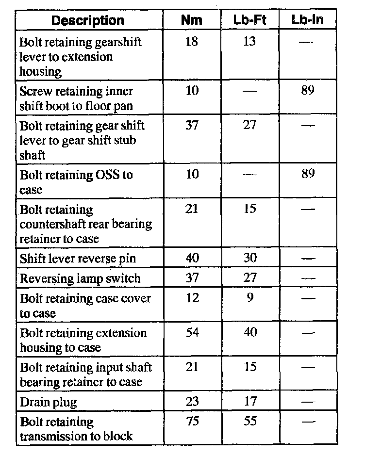 Torque Specifications