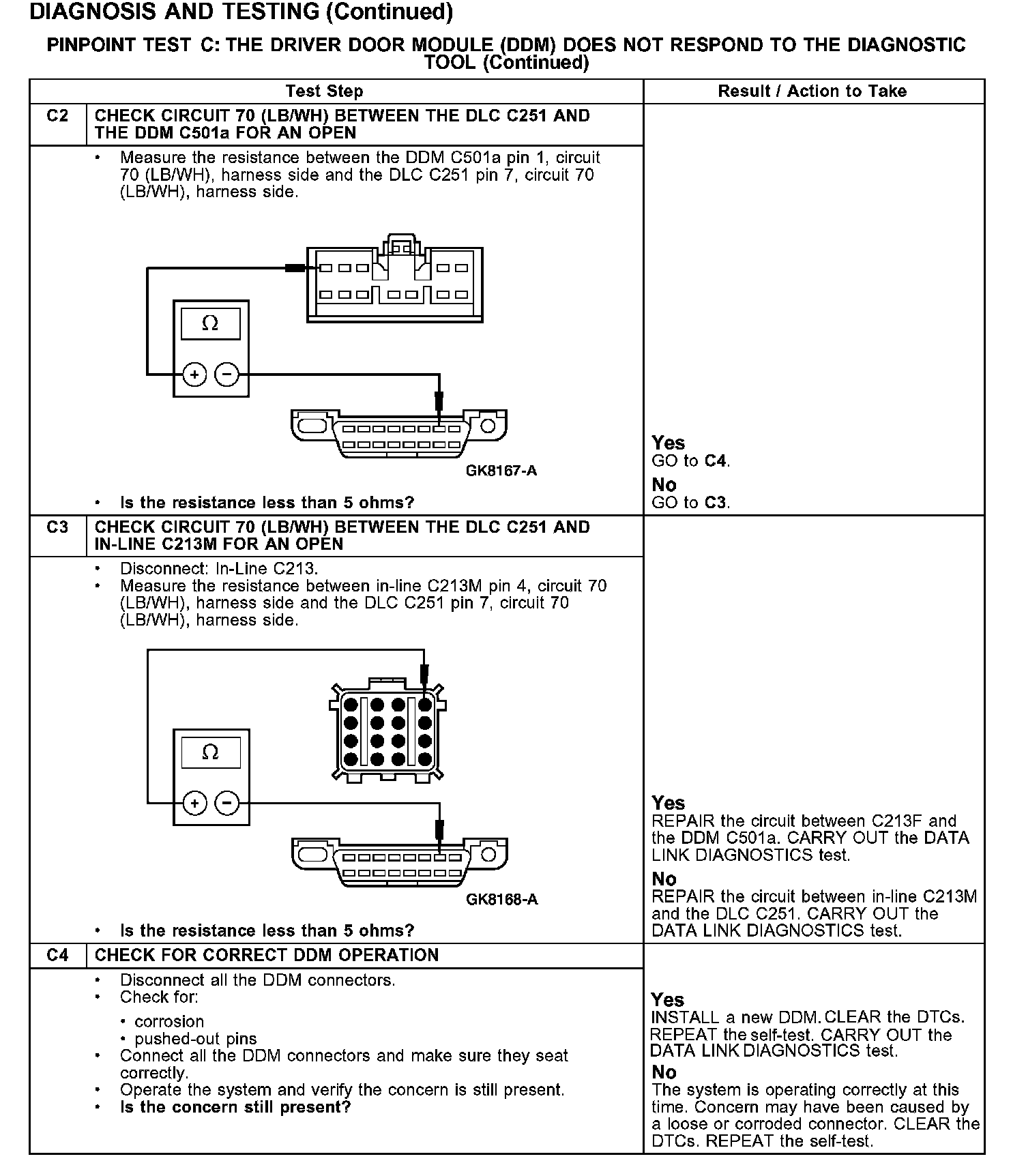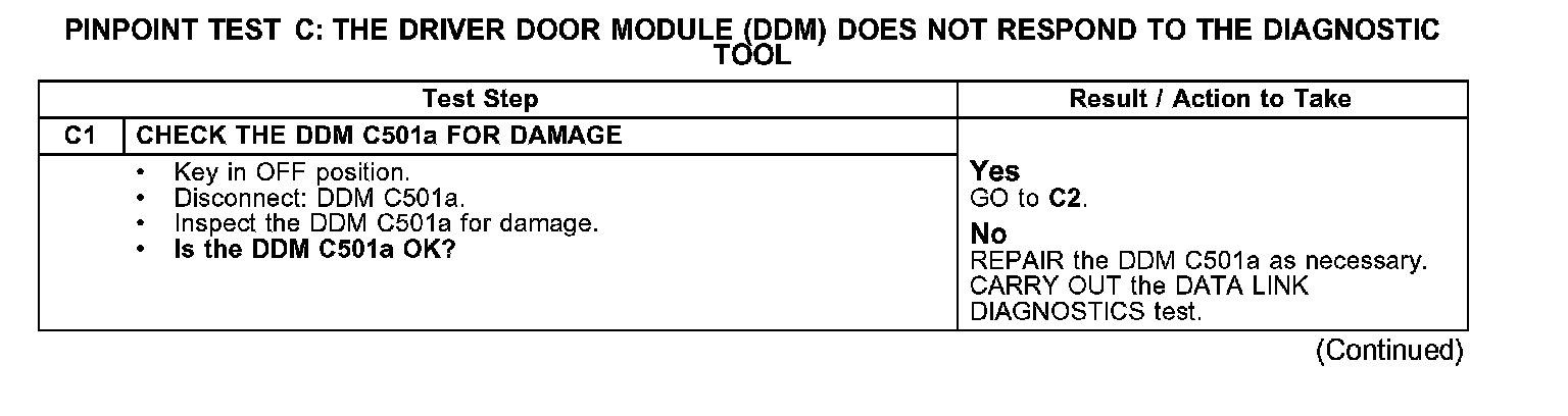PINPOINT TEST C: THE DRIVER DOOR MODULE (DDM) DOES NOT RESPOND TO THE DIAGNOSTIC TOOL