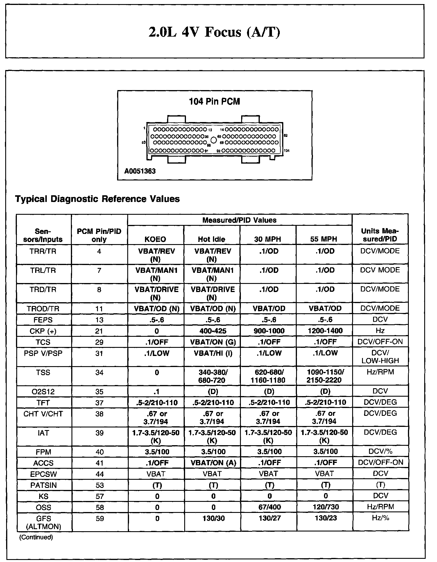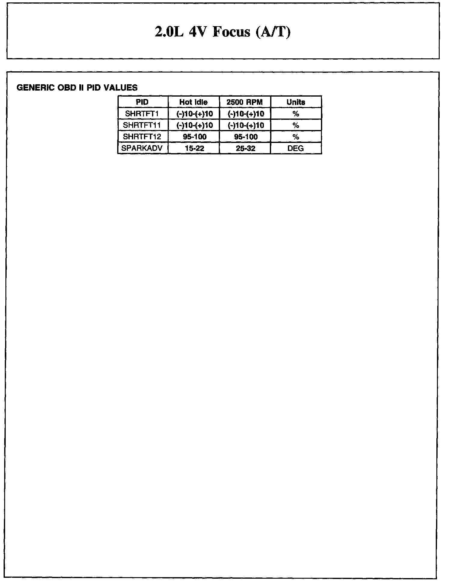 The Typical Diagnostic Reference Value Charts do not display fault PIDs. These are PIDs which indicate a hard fault with the circuit. They display a value of "YES" or "NO" and are PIDs ending with an "F".