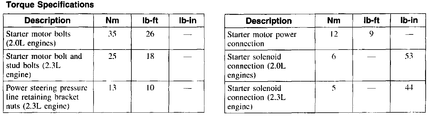 Starter Motor: Specifications