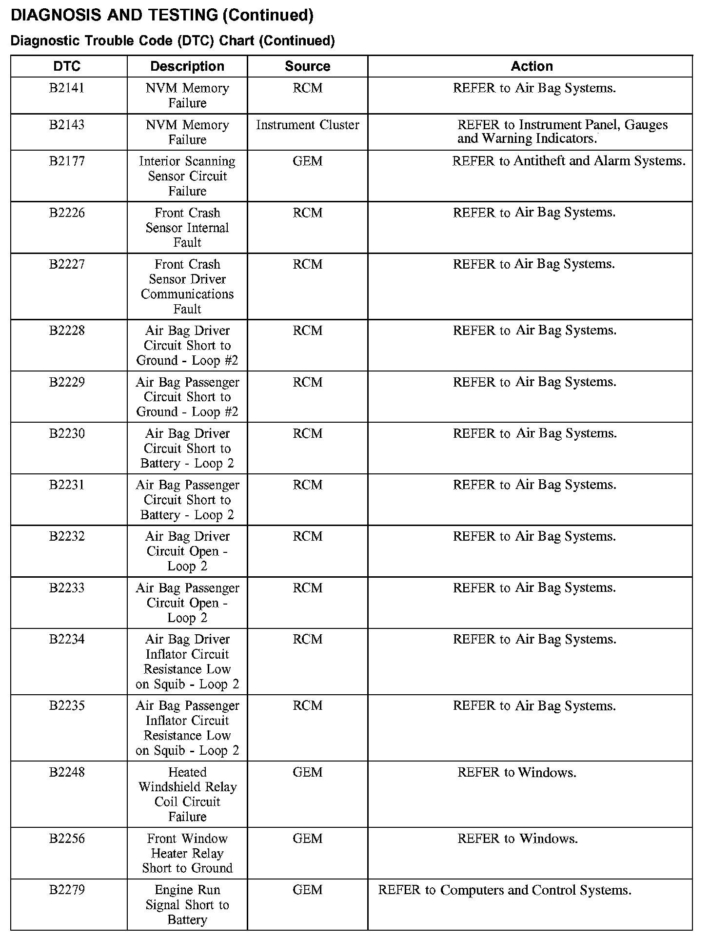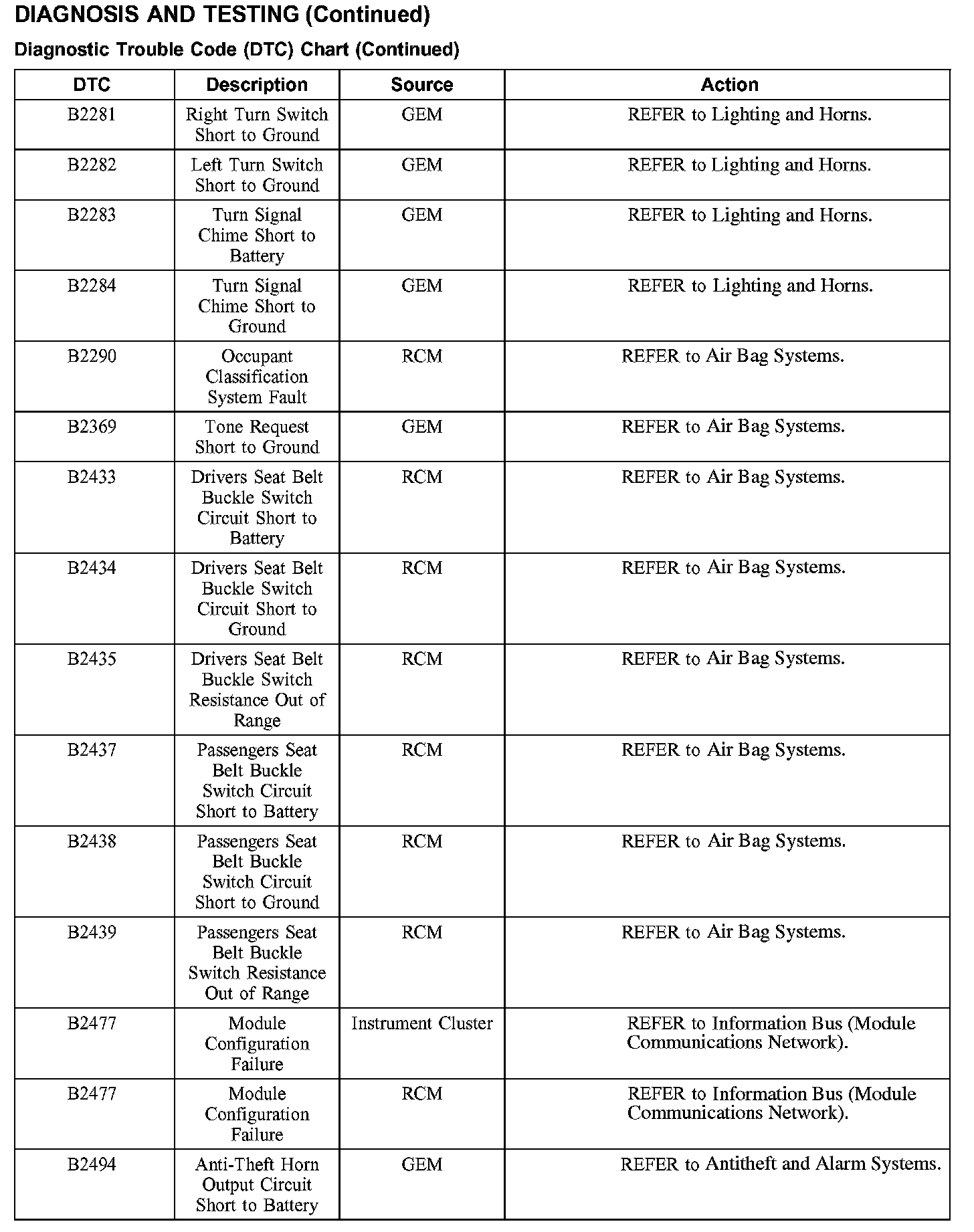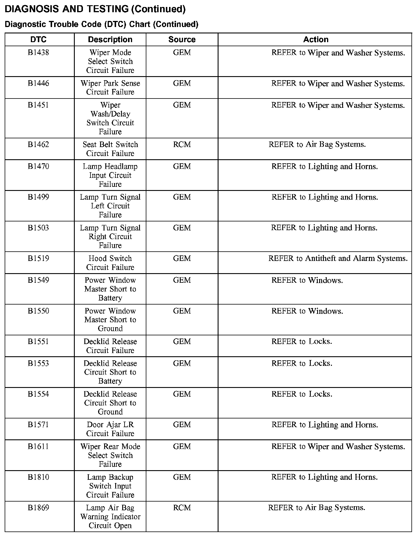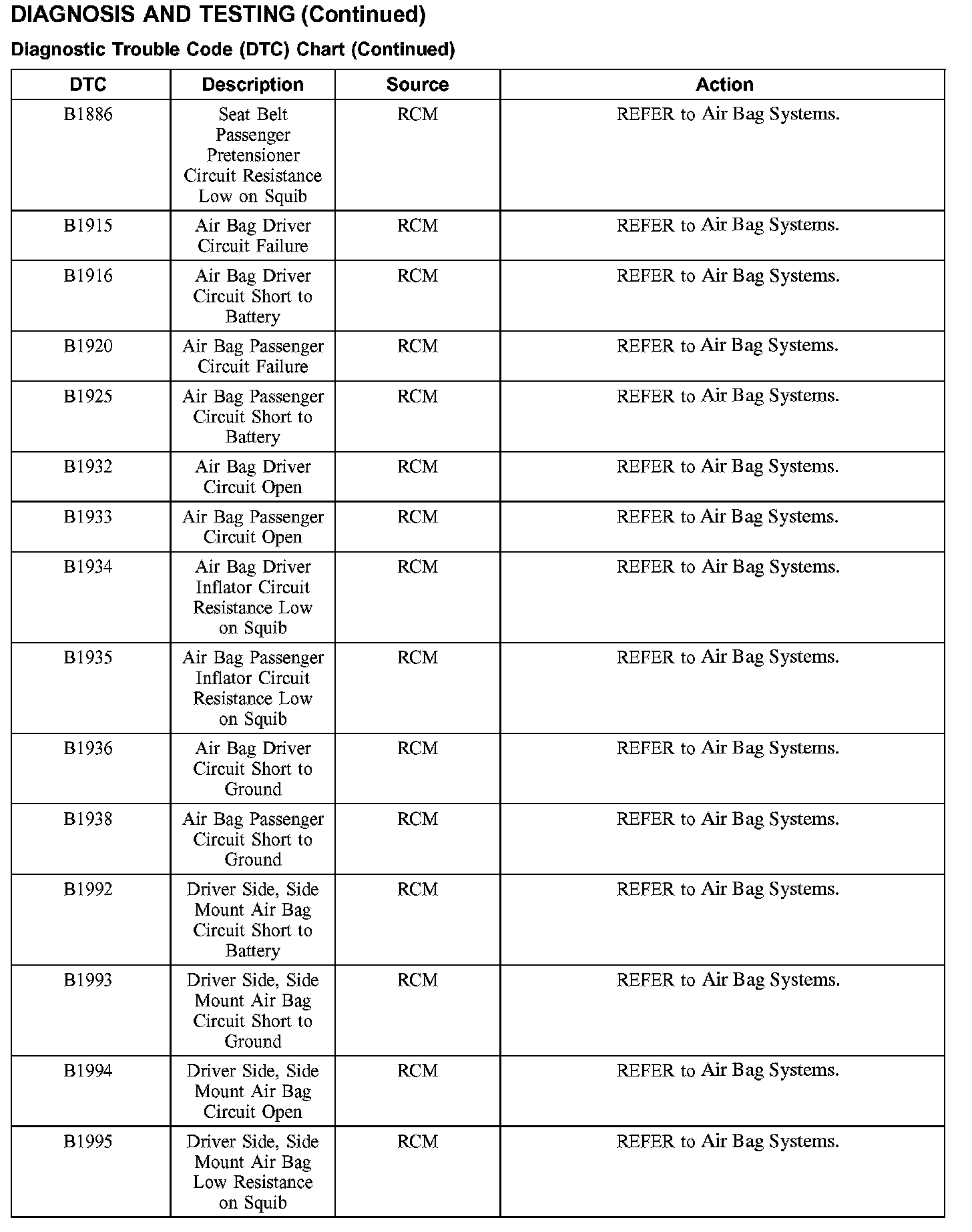 DIAGNOSTIC TROUBLE CODE (DTC) CHARTDTC Chart B1202 - B1204: