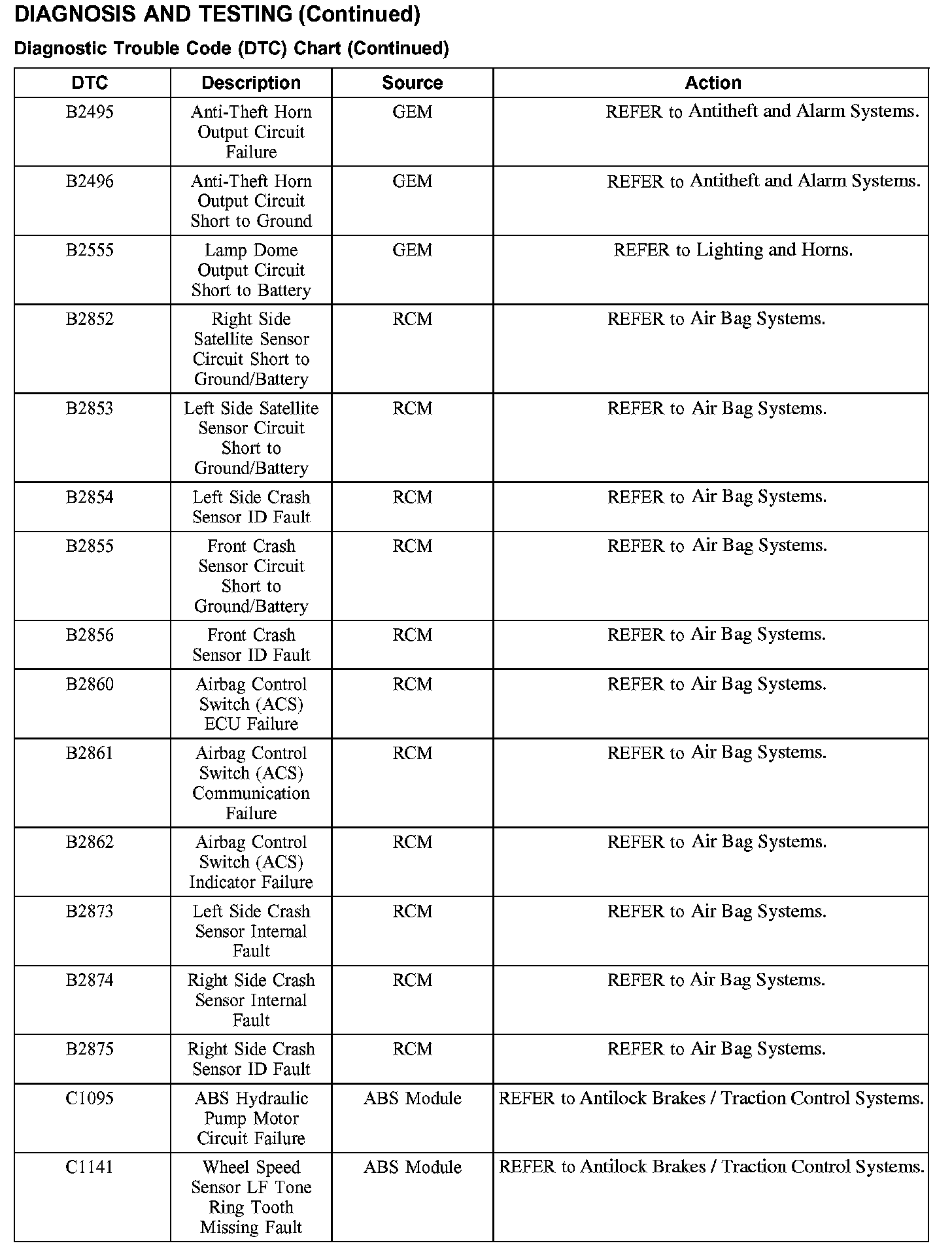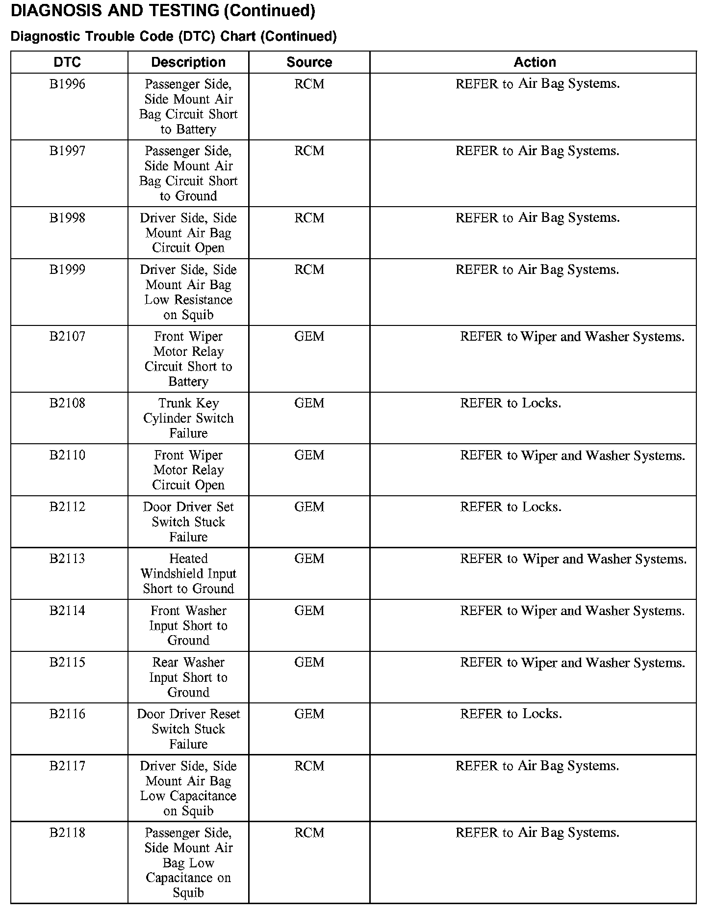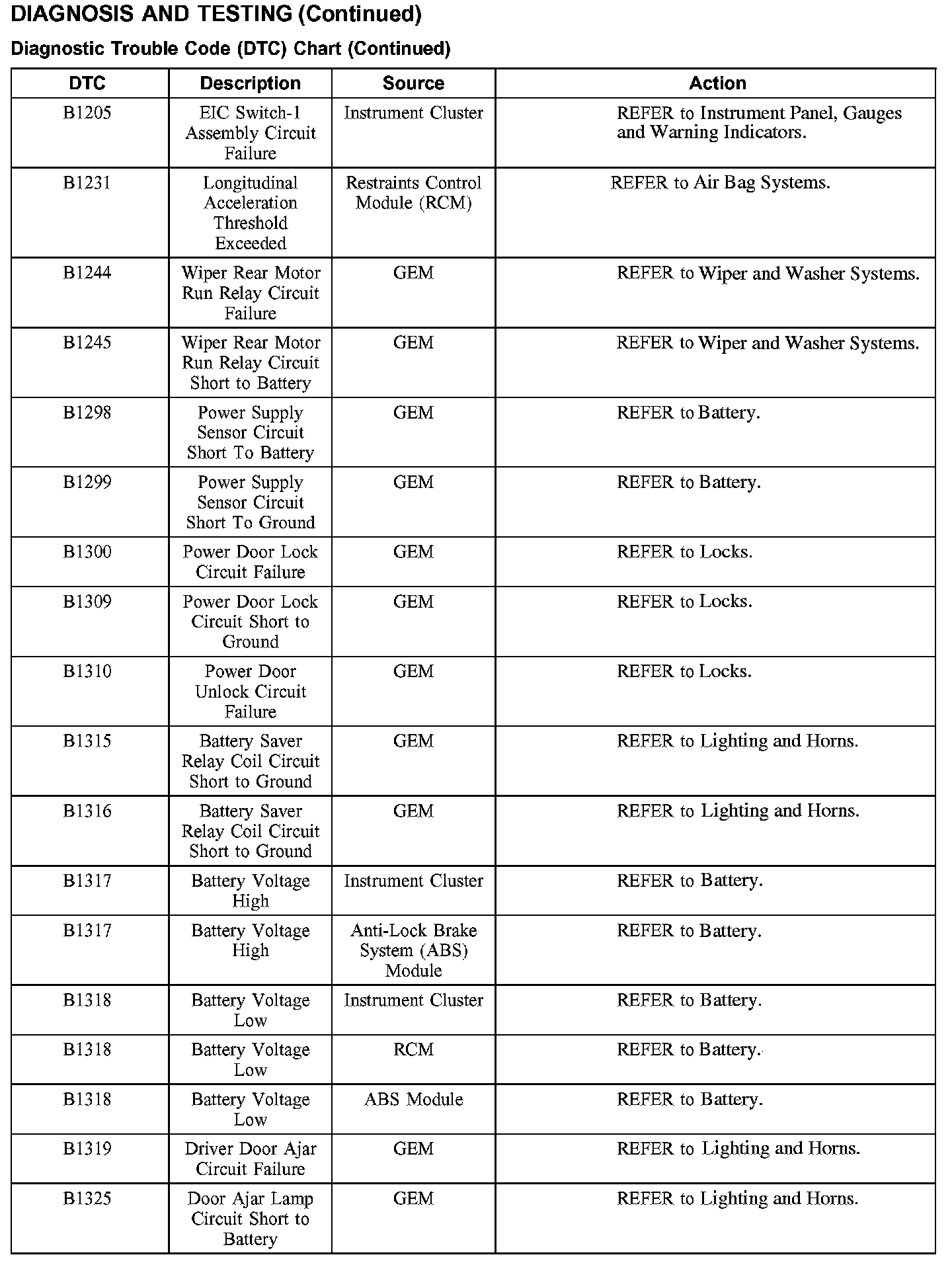DIAGNOSTIC TROUBLE CODE (DTC) CHARTDTC Chart B1202 - B1204: