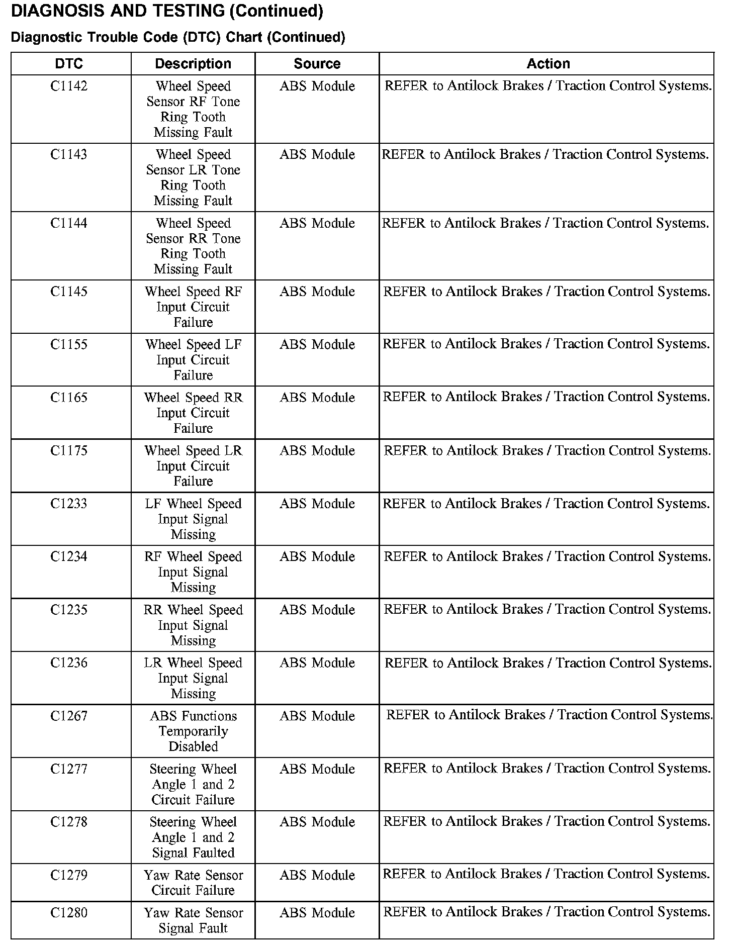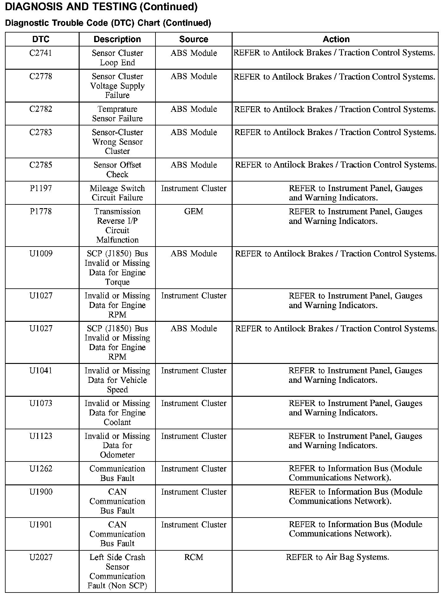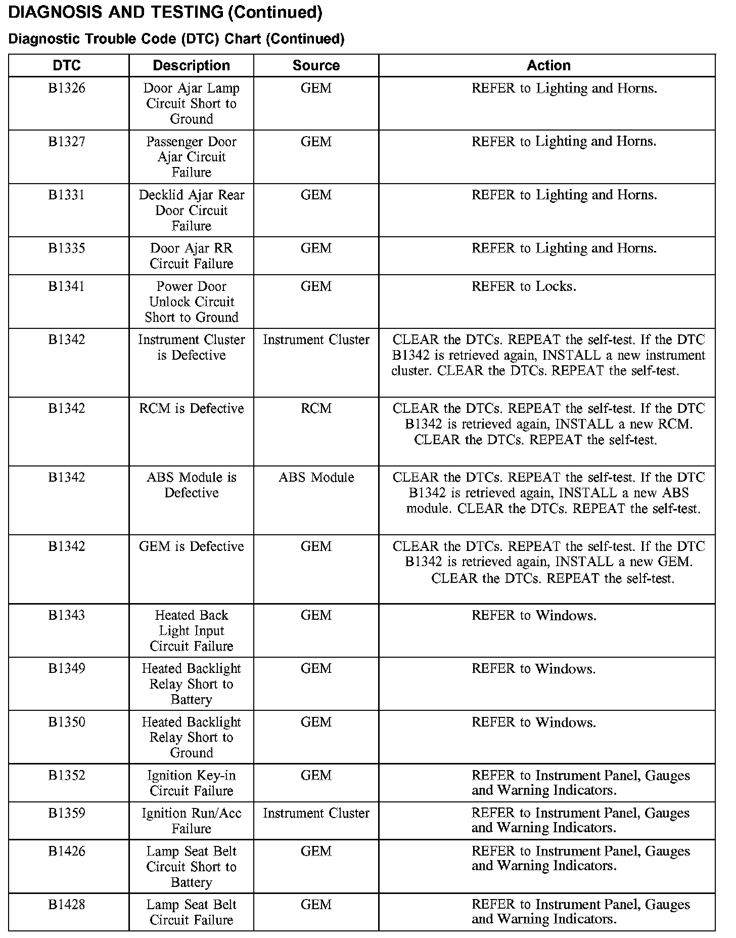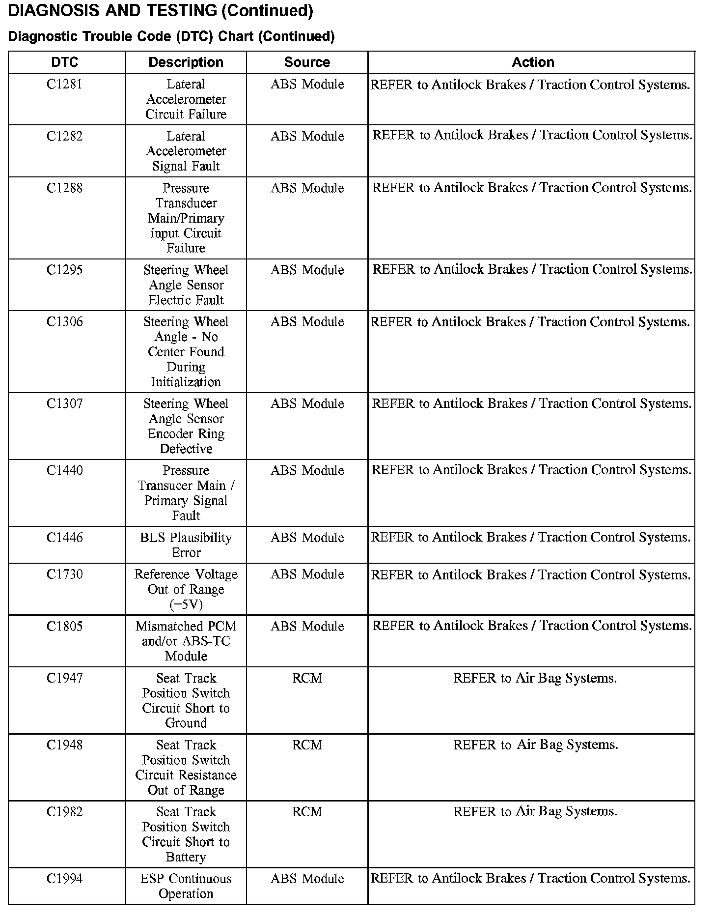 DIAGNOSTIC TROUBLE CODE (DTC) CHARTDTC Chart B1202 - B1204: