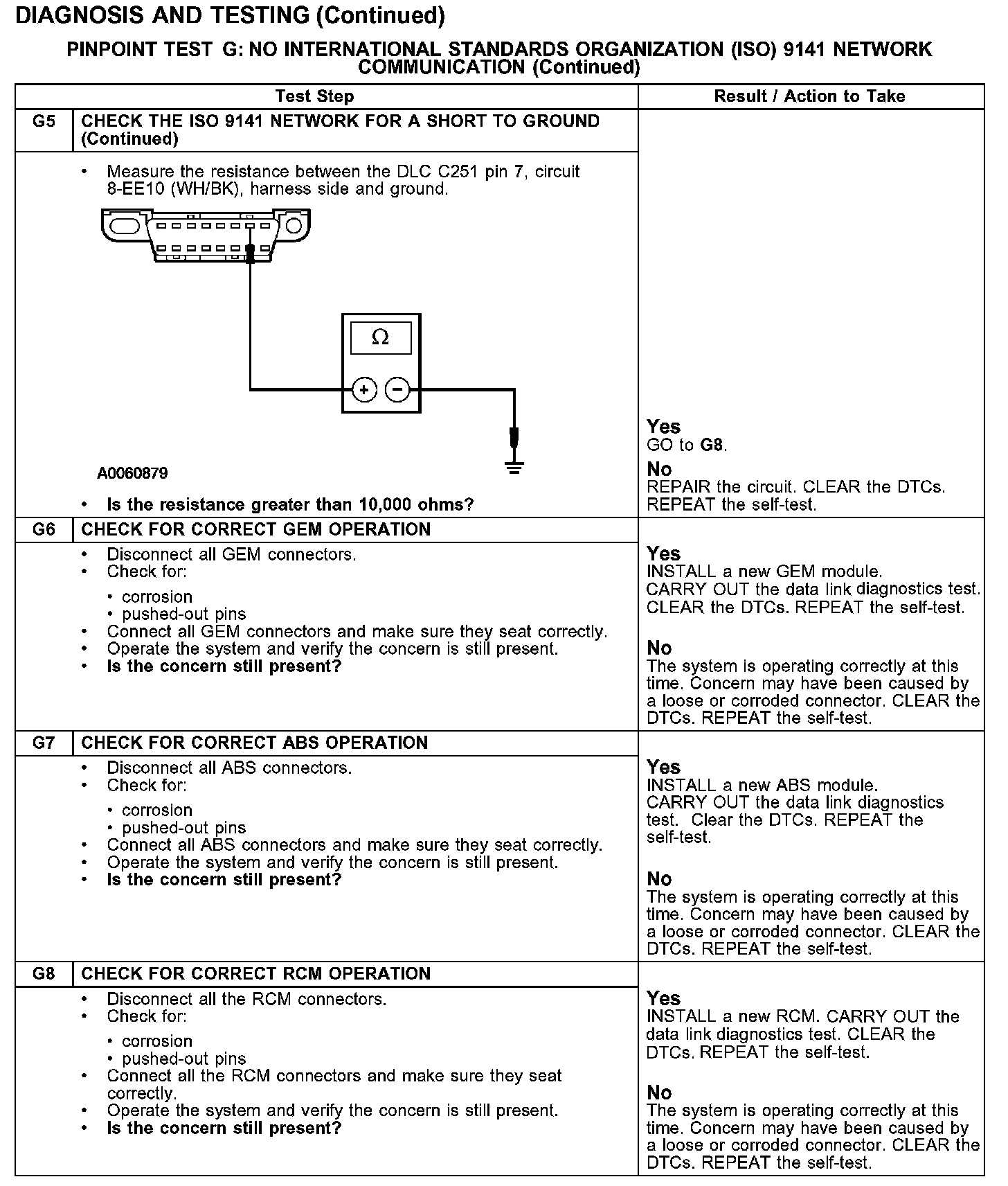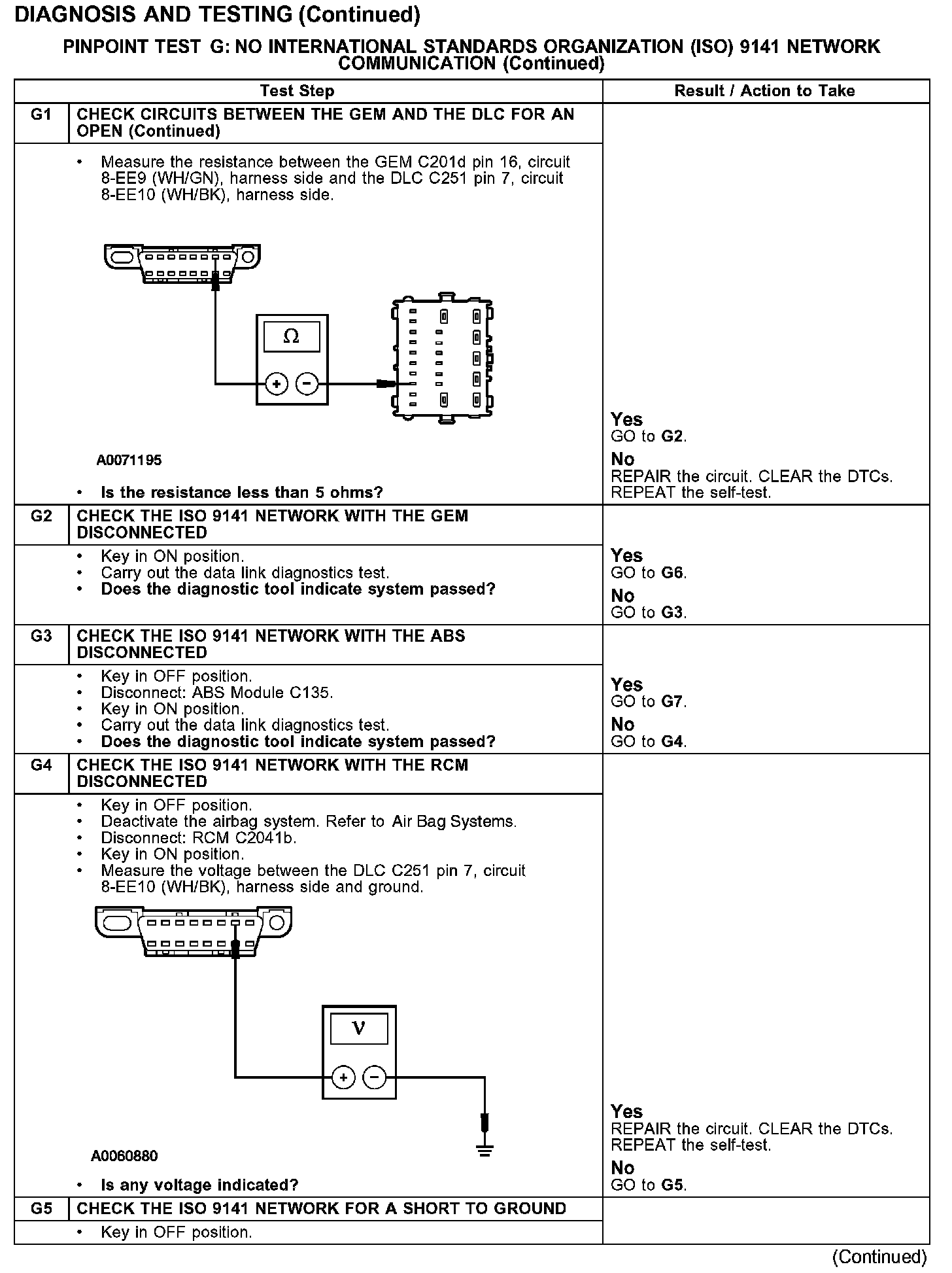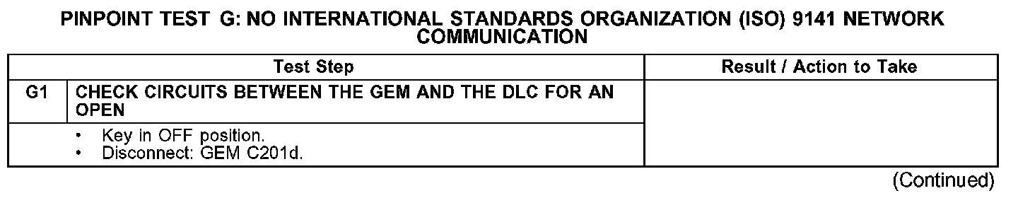 PINPOINT TEST G: NO INTERNATIONAL STANDARDS ORGANIZATION (ISO) 9141 NETWORK COMMUNICATION
