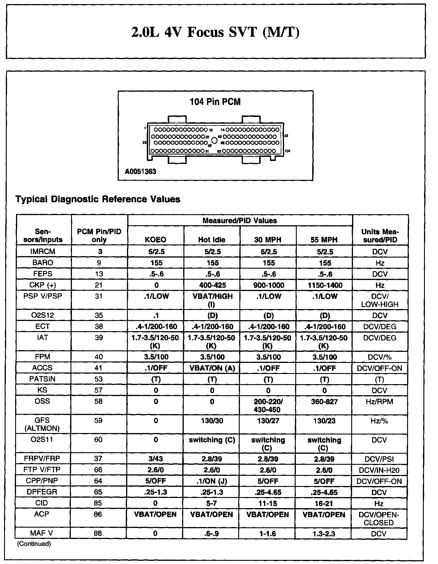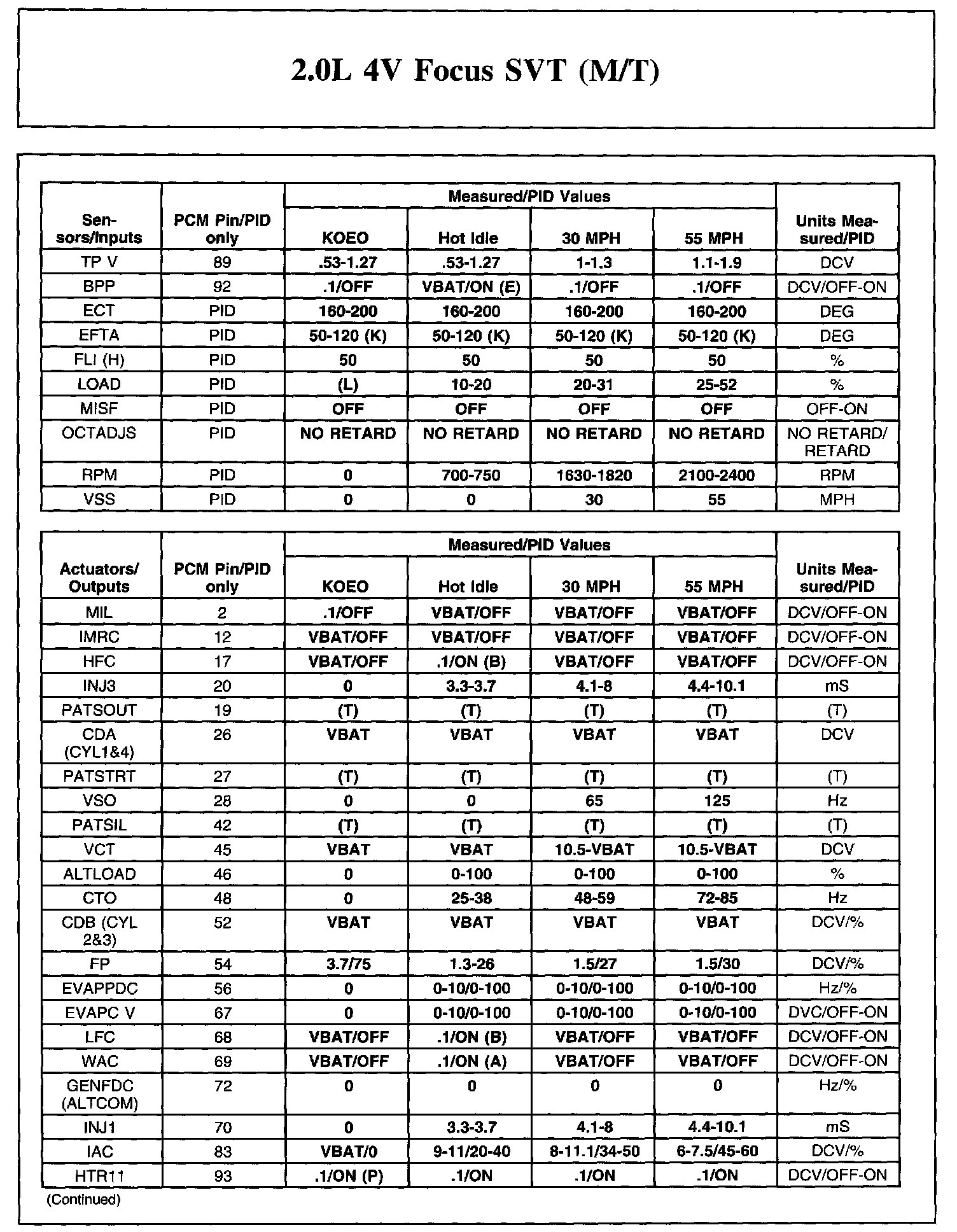 The Typical Diagnostic Reference Value Charts do not display fault PIDs. These are PIDs which indicate a hard fault with the circuit. They display a value of "YES" or "NO" and are PIDs ending with an "F".