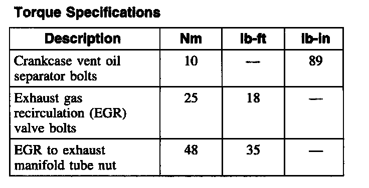 Torque Specifications: