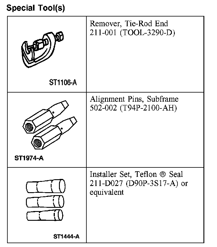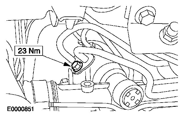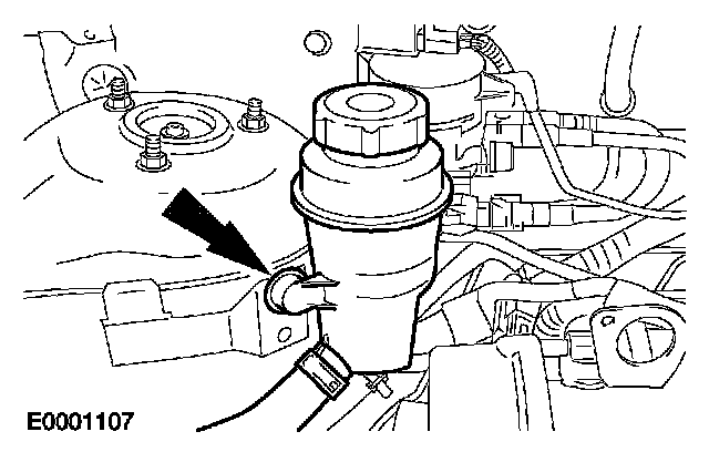 5. Using the special tool, install new O-ring seals (high pressure hose pin, 3F886-AA, return hose pin 3F886-BA) onto the power steering lines.