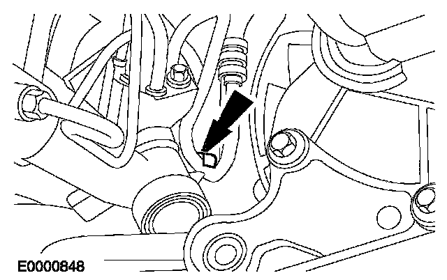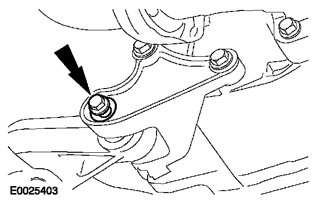 9. Remove the engine support insulator to transaxle center retaining bolt.