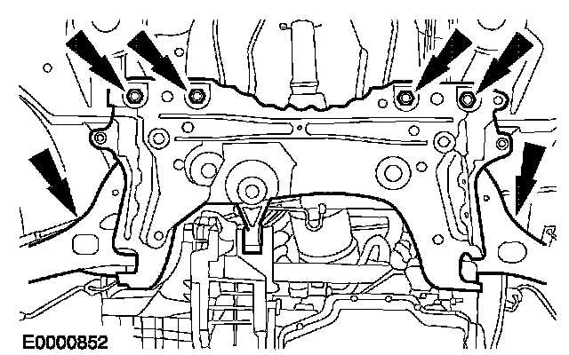 2. CAUTION: While tightening the crossmember retaining bolts, make sure the crossmember does not move.