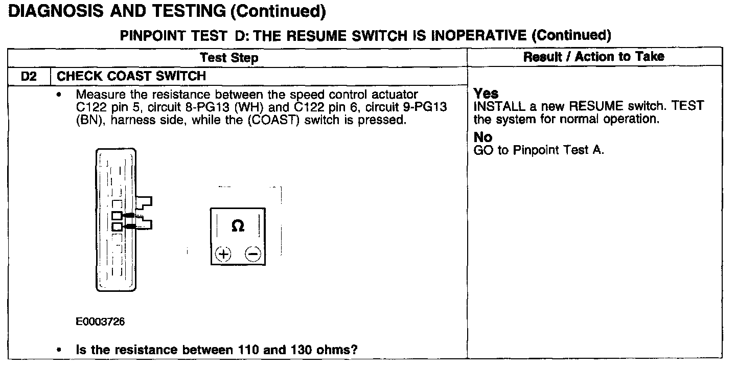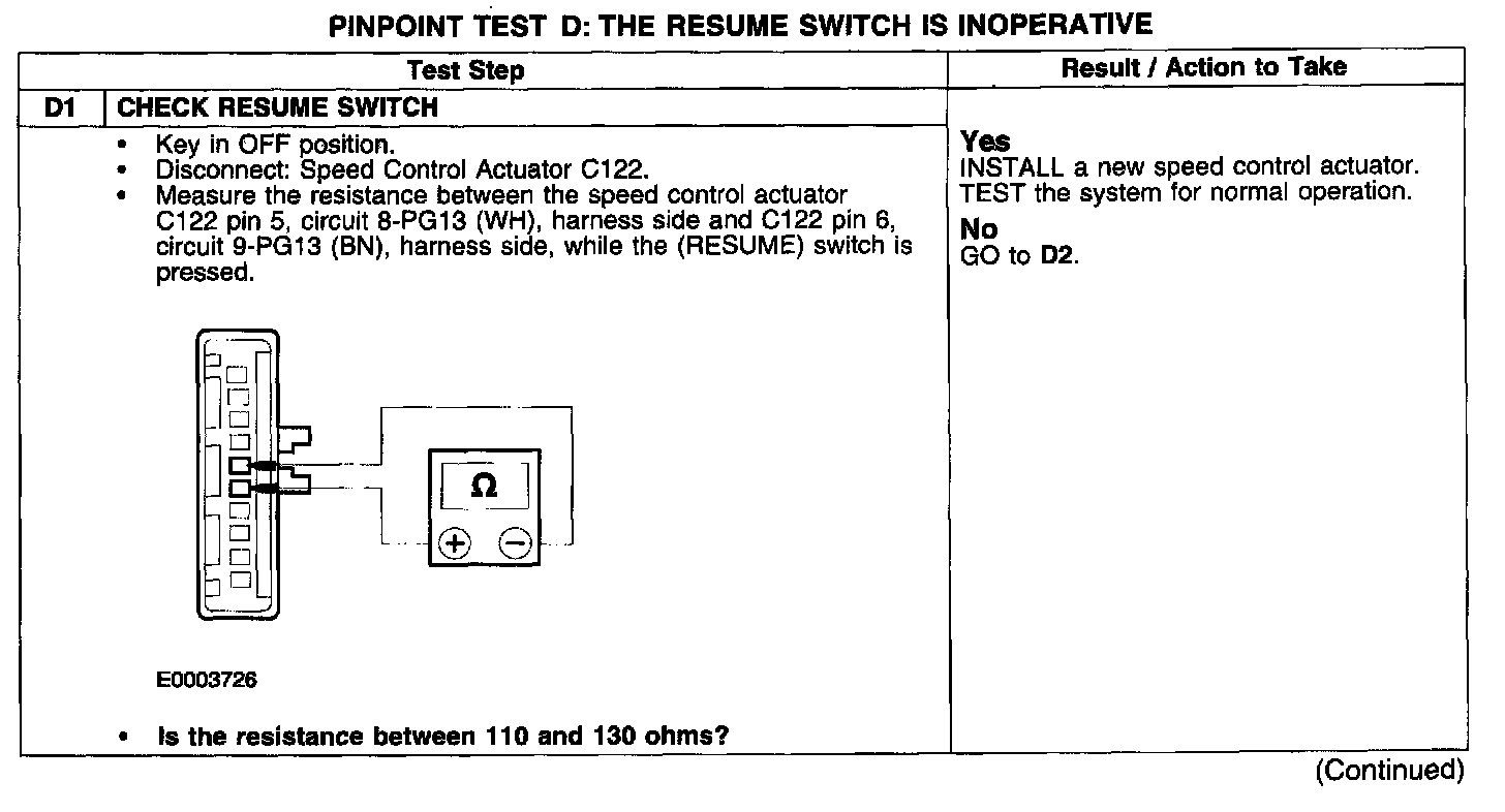 PINPOINT TEST D: THE RESUME SWITCH IS INOPERATIVE