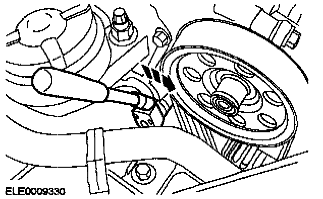 2 Insert a 3 mm (1/8 in.) drill bit to lock the timing belt tensioner in place.