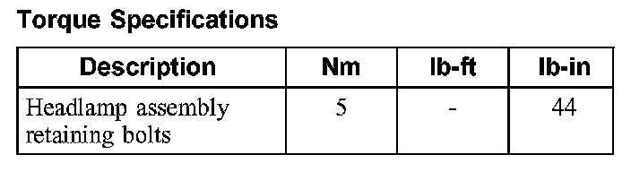 Torque Specifications: