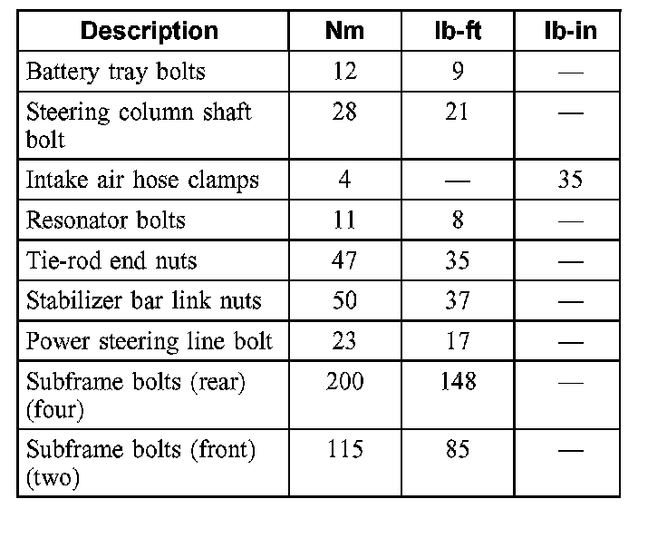 Torque Specifications