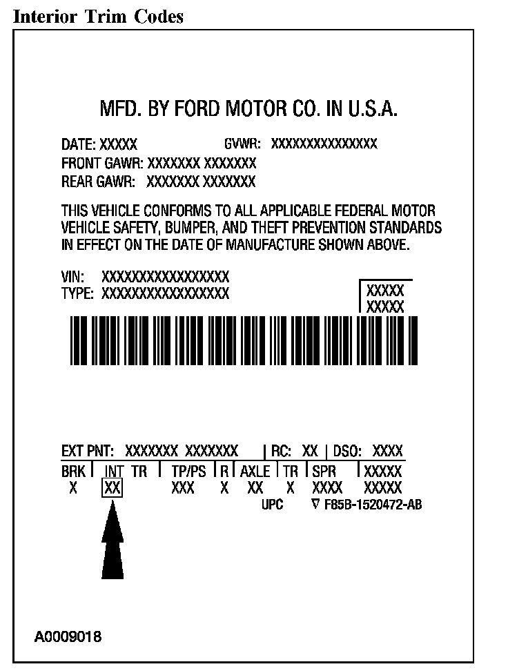The interior trim codes are listed below. The first digit listed indicates the seat and fabric style. The second digit listed indicates the interior trim color.