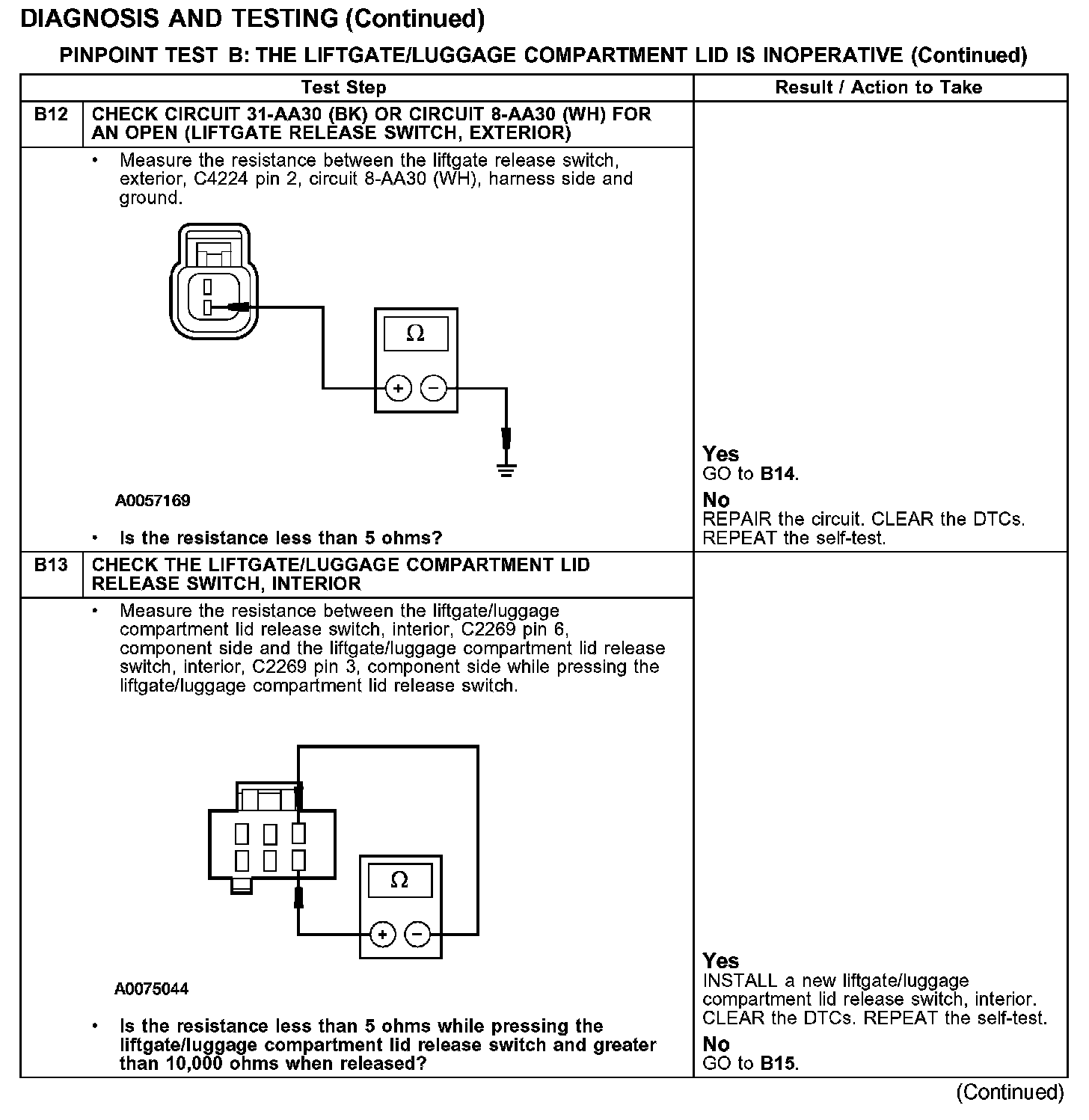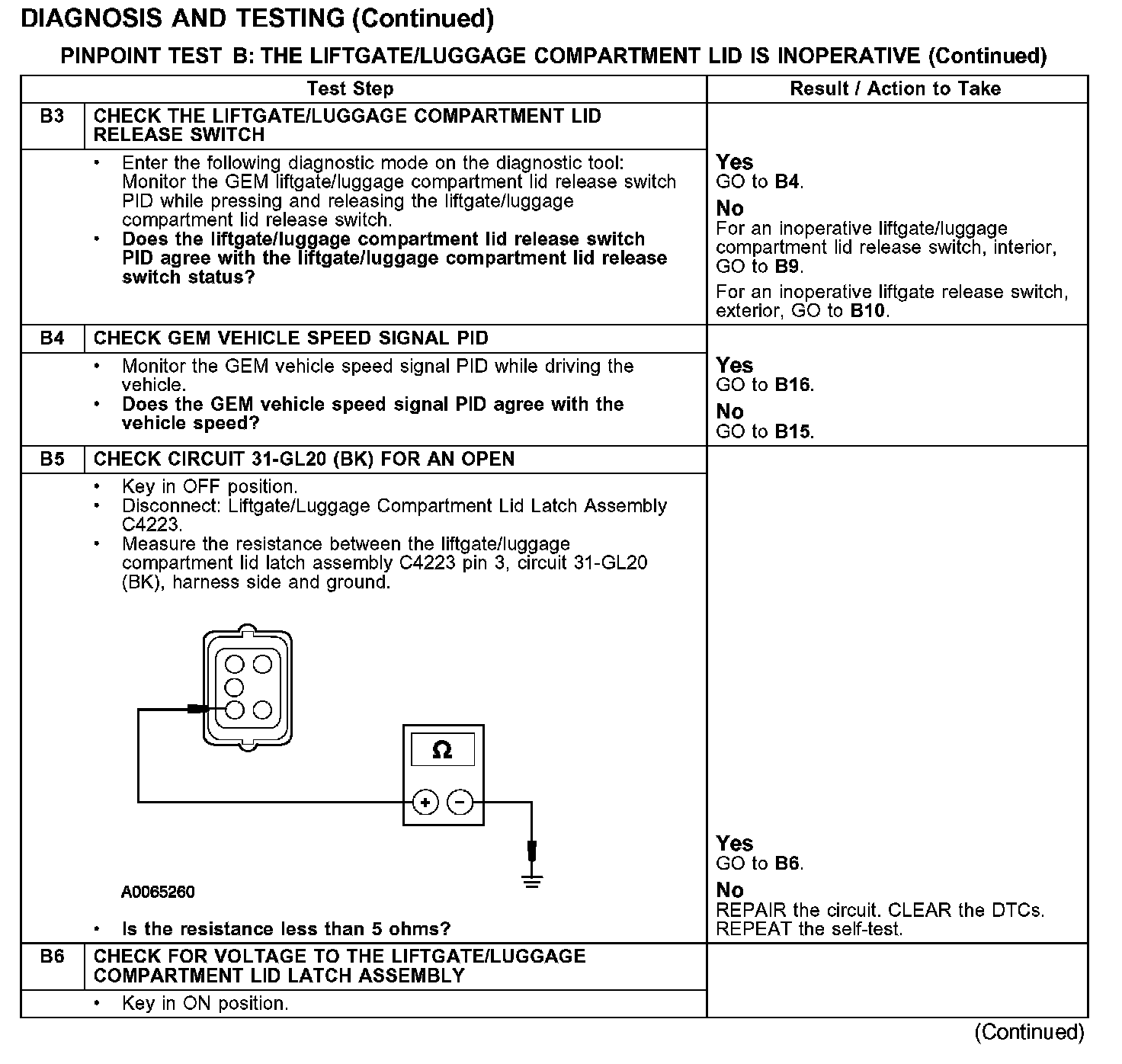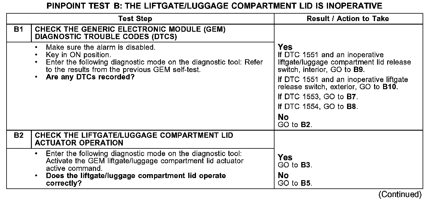 PINPOINT TEST B: THE LIFTGATE/LUGGAGE COMPARTMENT LID IS INOPERATIVE