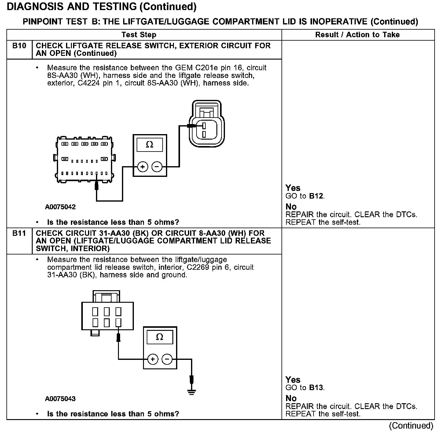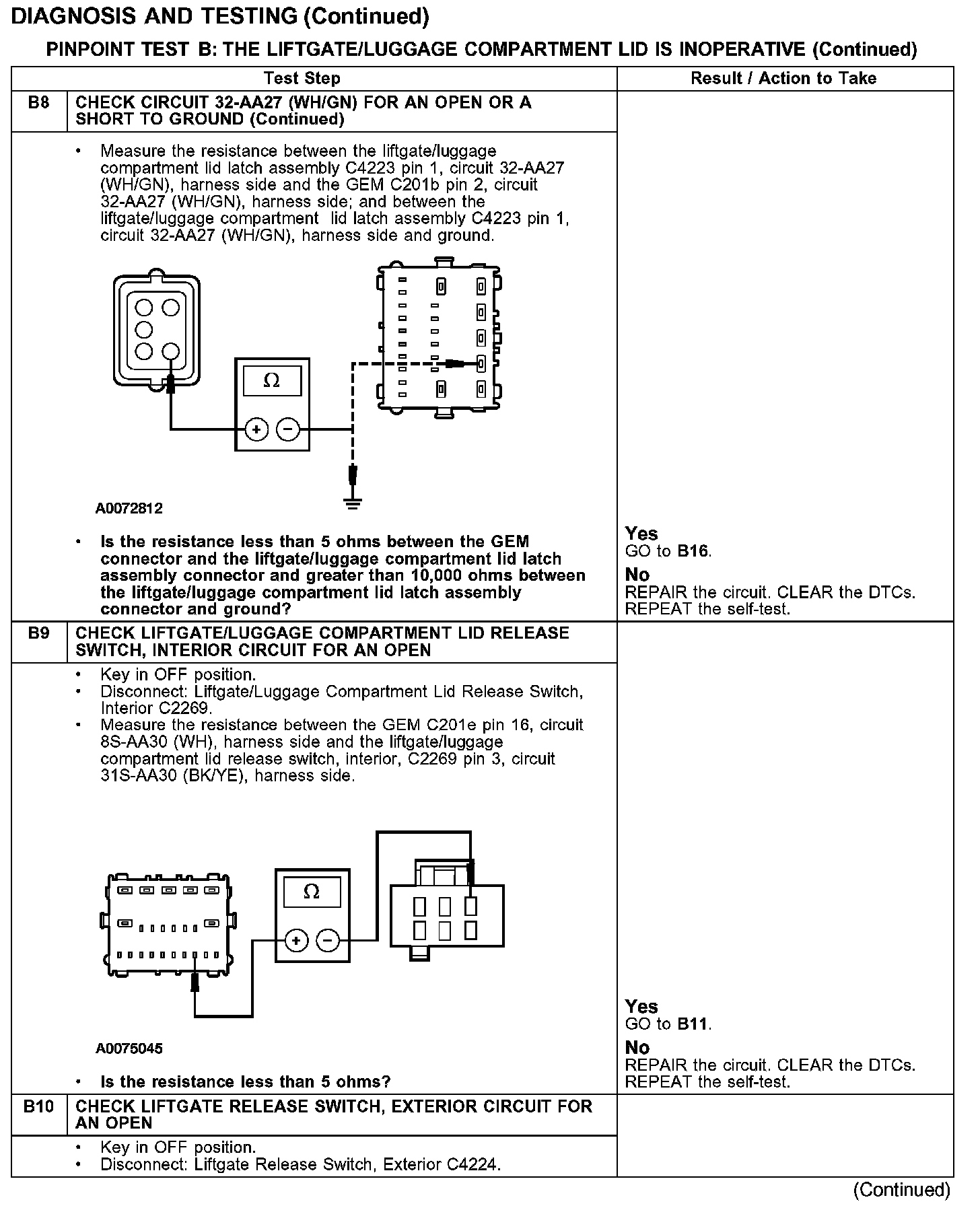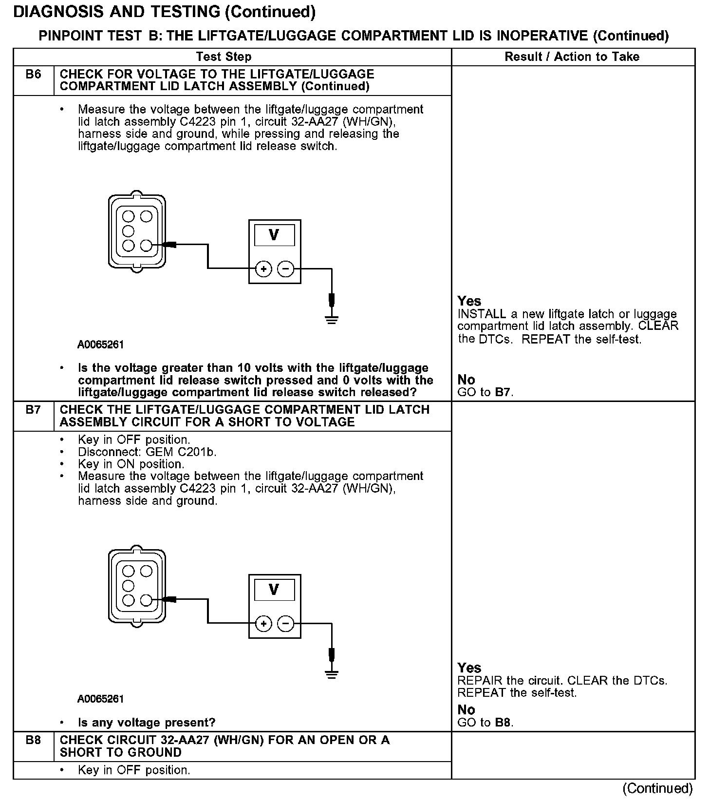 PINPOINT TEST B: THE LIFTGATE/LUGGAGE COMPARTMENT LID IS INOPERATIVE