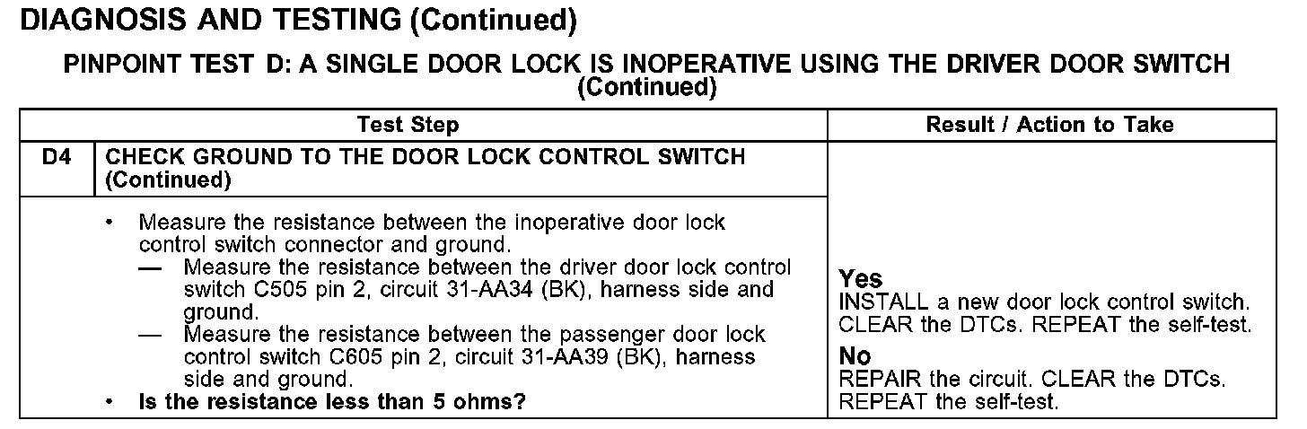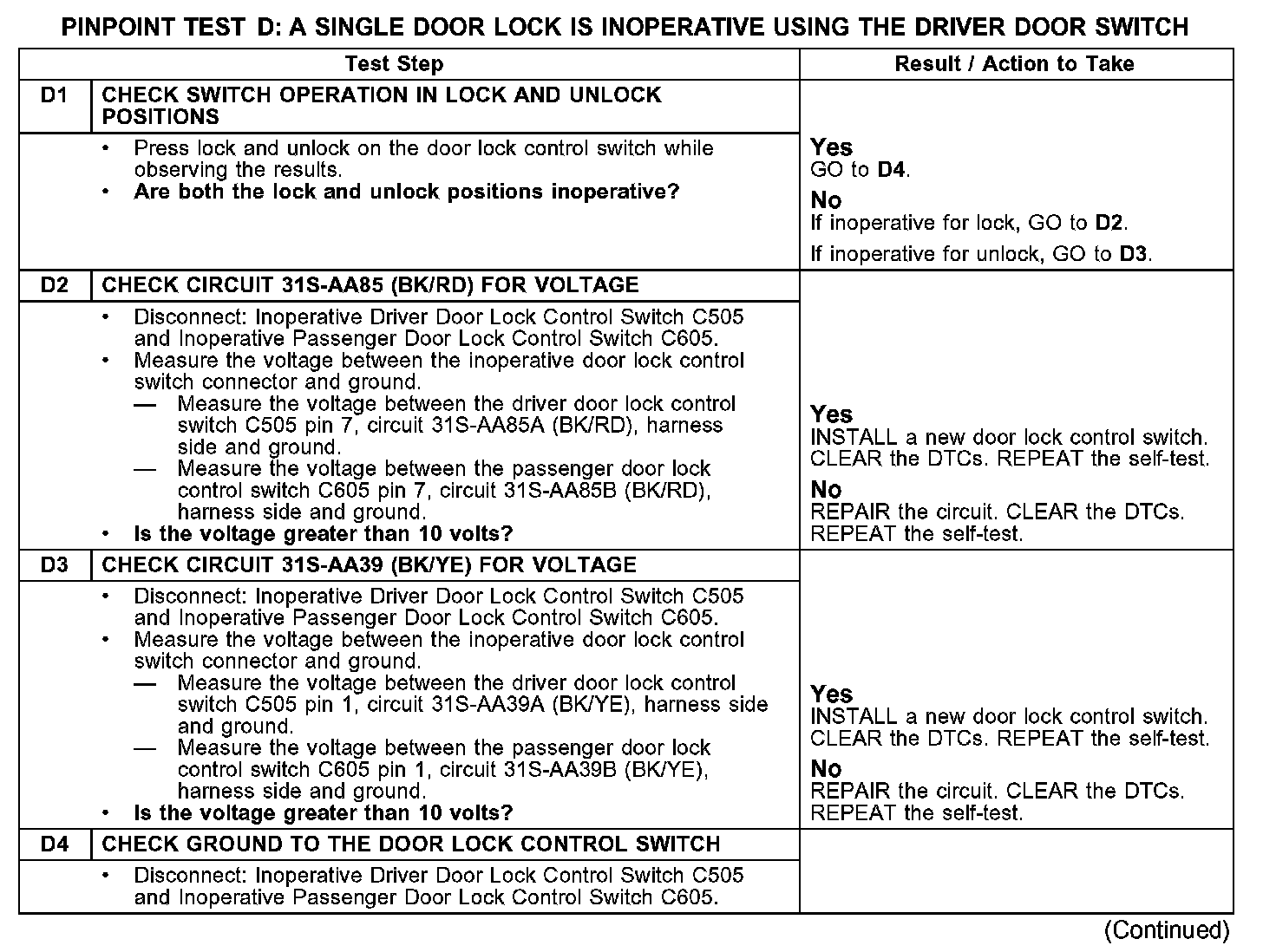 PINPOINT TEST D: A SINGLE DOOR LOCK IS INOPERATIVE USING THE DRIVER DOOR SWITCH