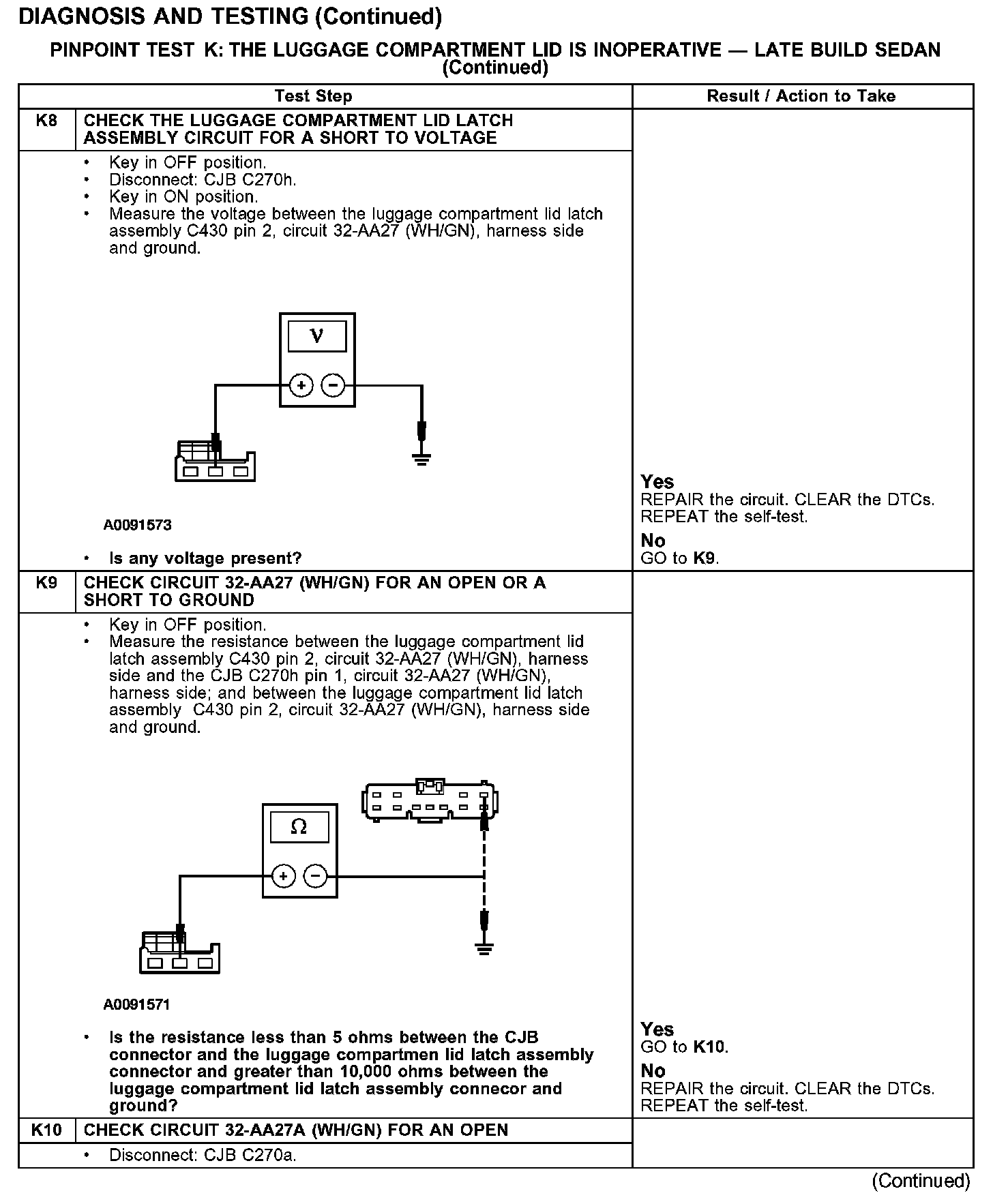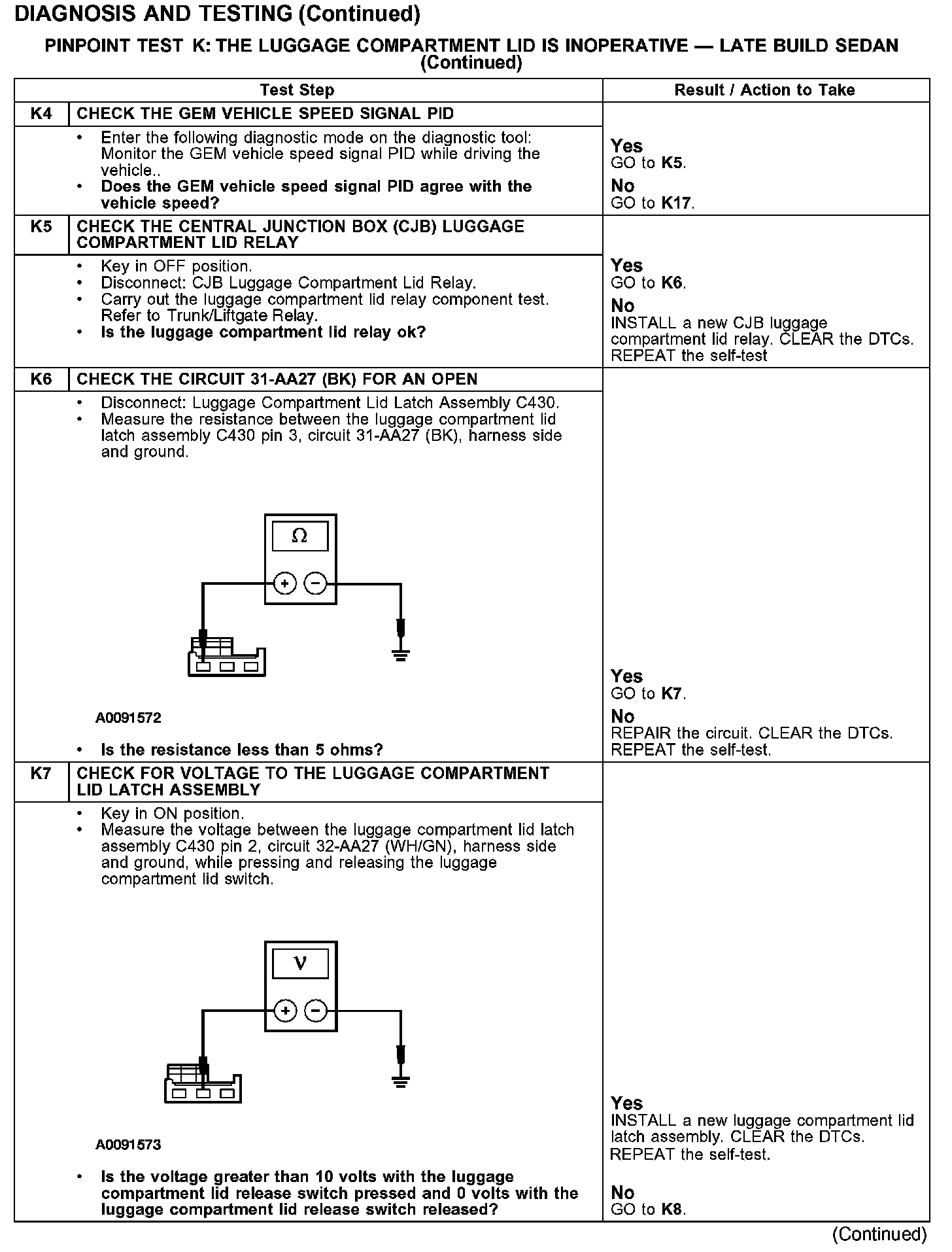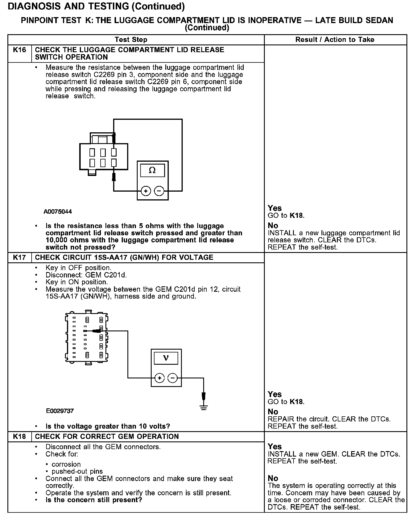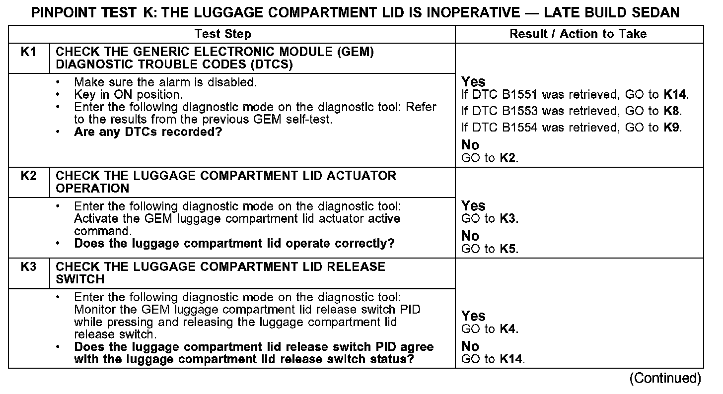 PINPOINT TEST K: THE LUGGAGE COMPARTMENT LID IS INOPERATIVE - LATE BUILD SEDAN