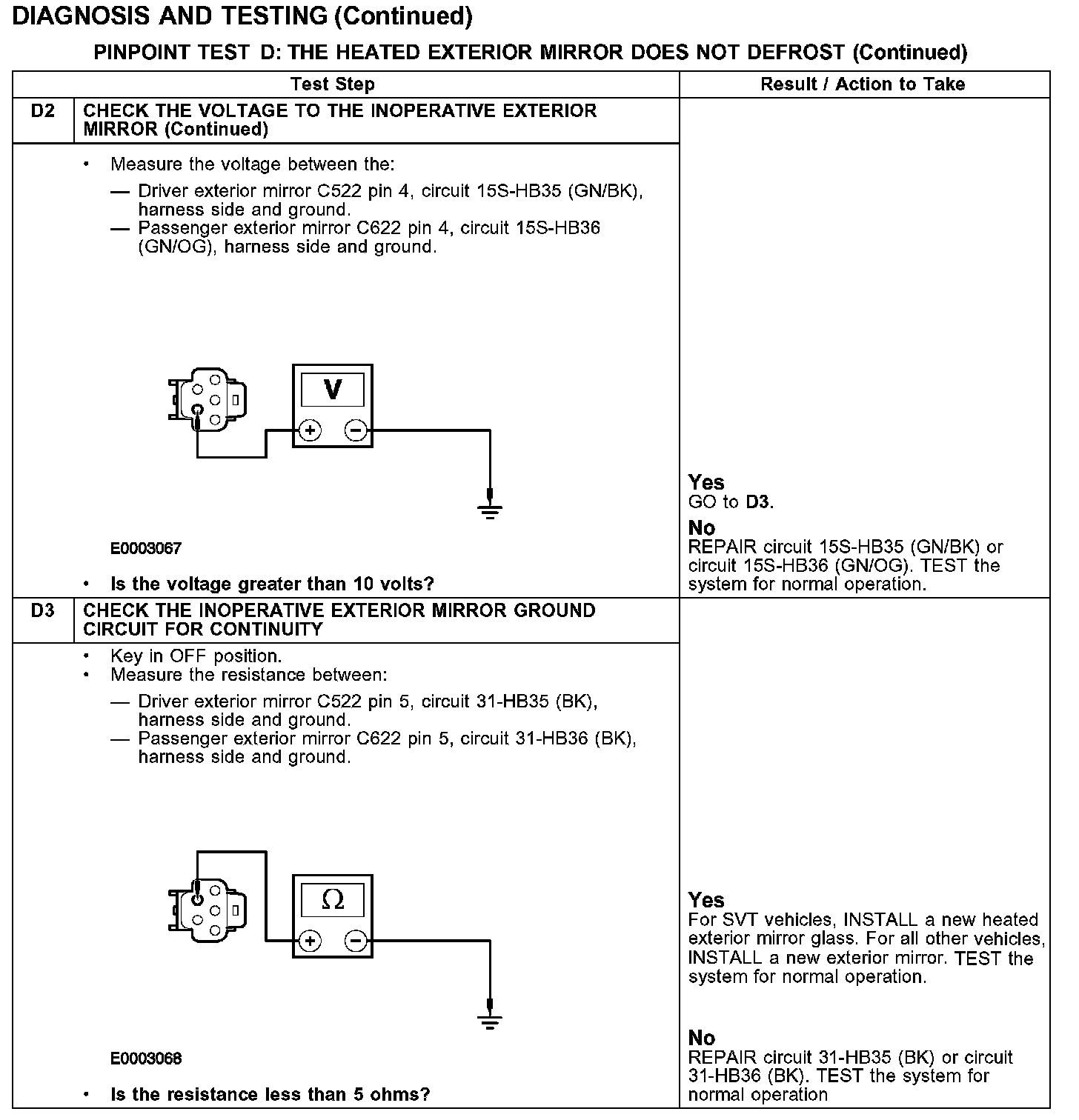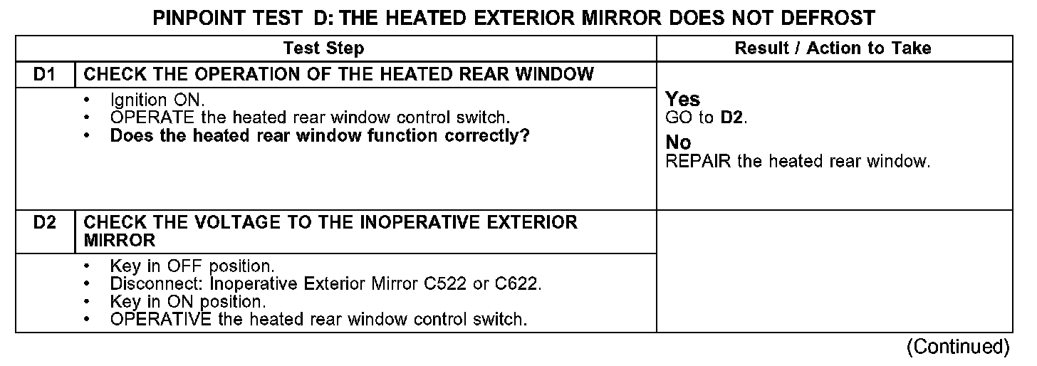 PINPOINT TEST D: THE HEATED EXTERIOR MIRROR DOES NOT DEFROST
