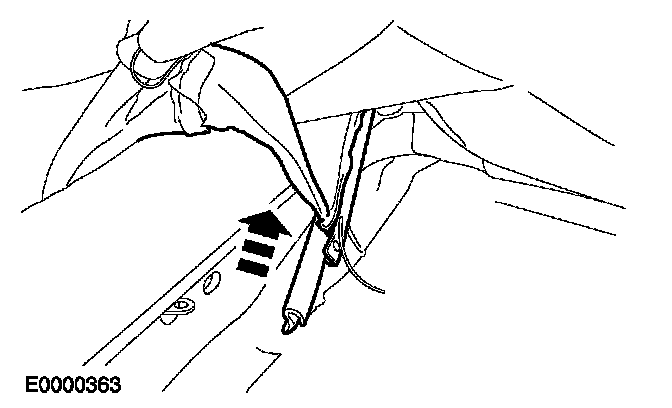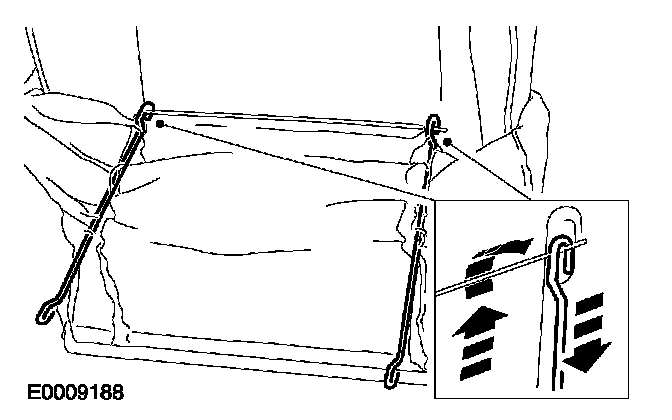 - Assemble the plastic rivet into the plastic retaining strip attaching the side air bag module deployment sleeve.