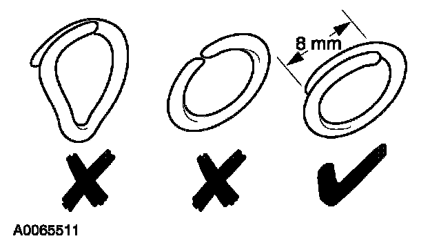 1. Use hog ring pliers to close the hog rings. Do not use any other tool. The hog rings must be closed to overlap as illustrated.