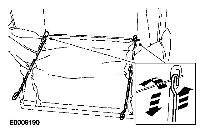 15. Remove the tensioning rods from the backrest cover if a new backrest cover is to be used.