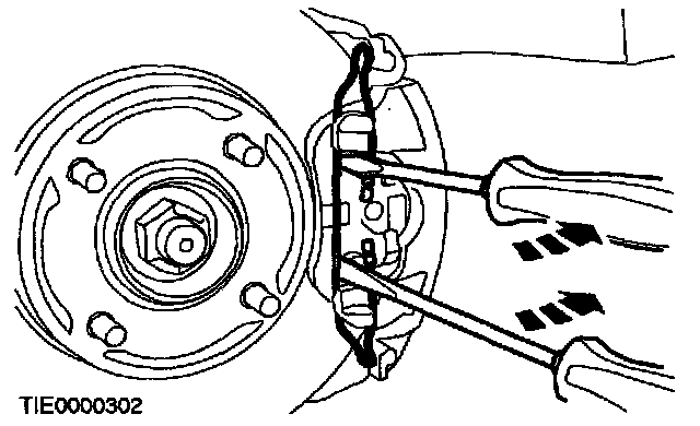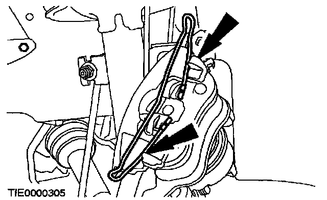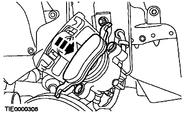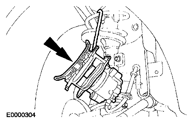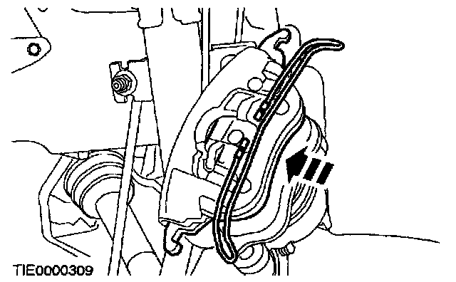 7. CAUTION: Suspend the caliper to prevent load being placed on the brake hose.