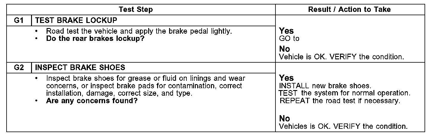 PINPOINT TEST G: BRAKE LOCKUP DURING LIGHT BRAKE PEDAL FORCE