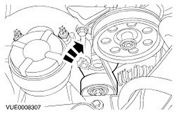 - Using a 3/8 inch square drive breaker bar in the hole provided, rotate the tensioner clockwise.