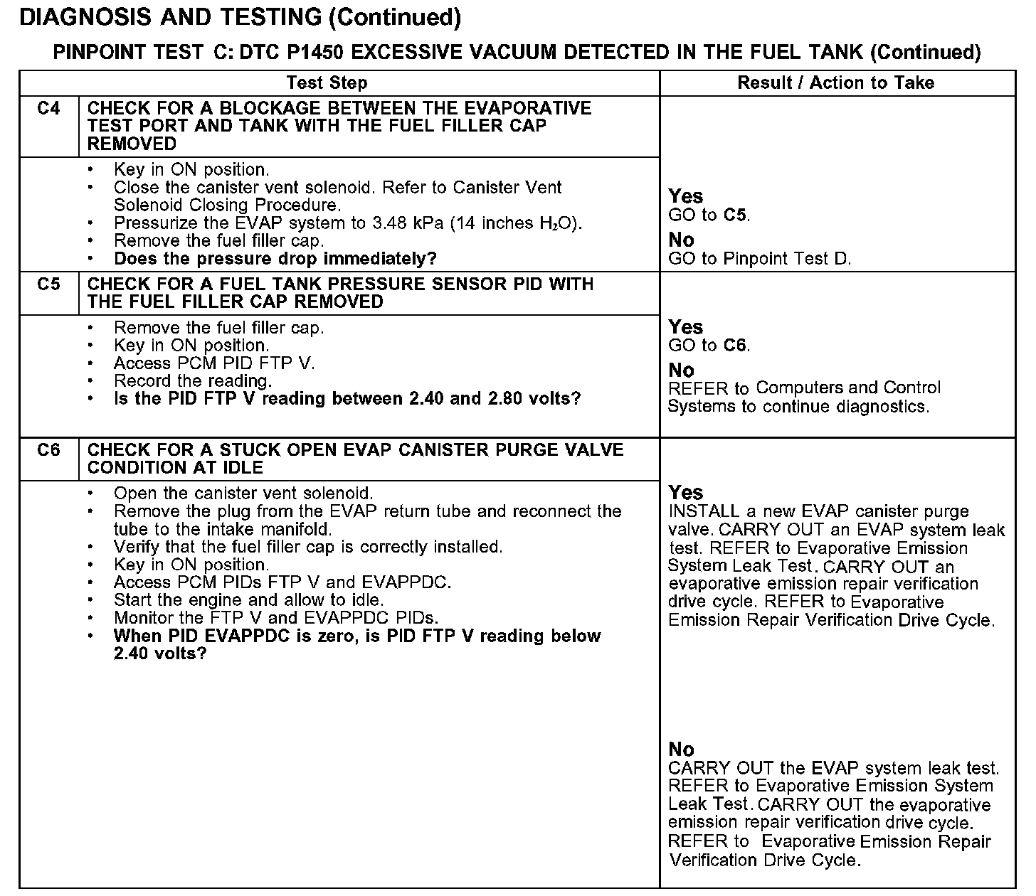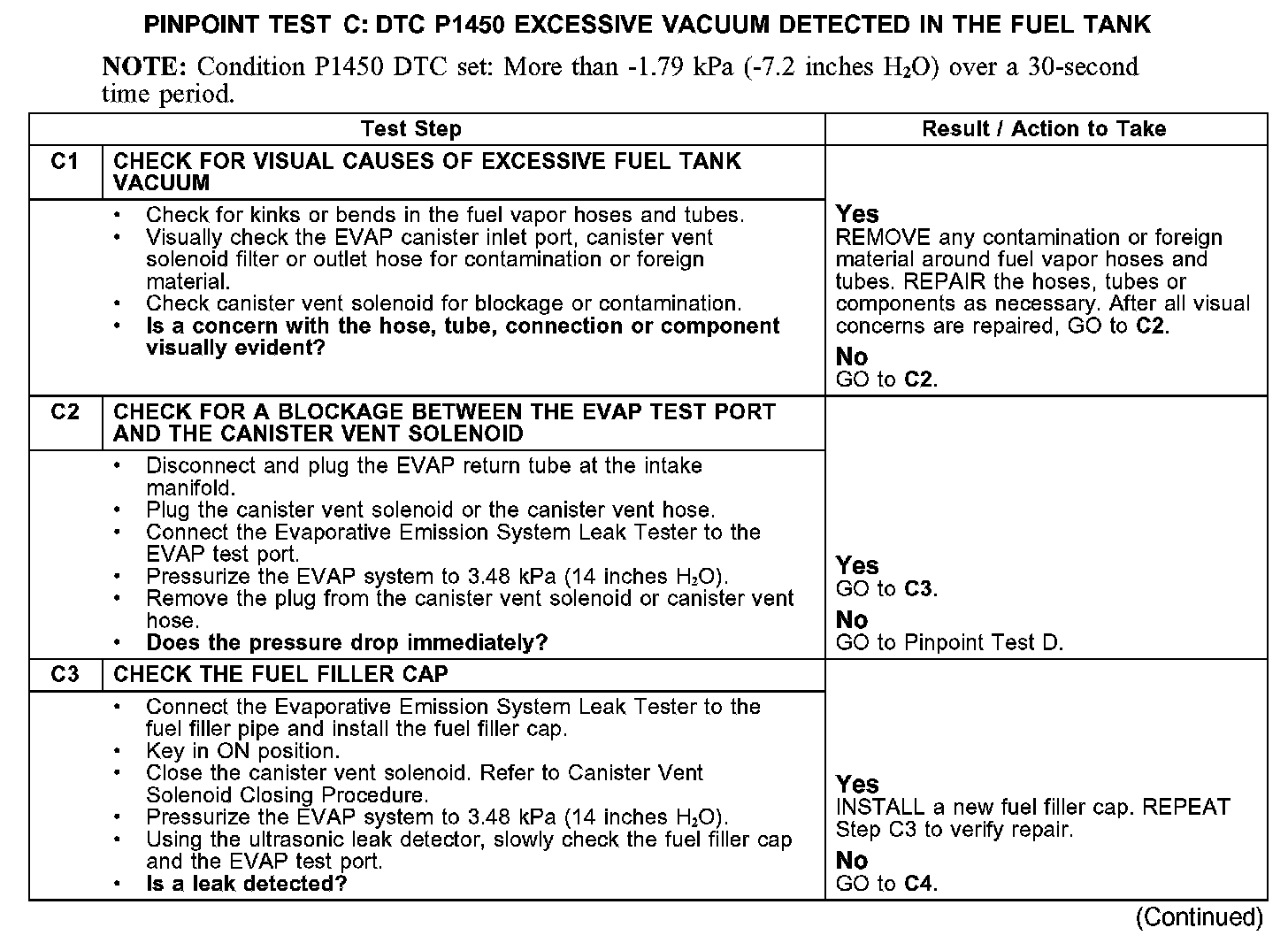 PINPOINT TEST C: DTC P1450 EXCESSIVE VACUUM DETECTED IN THE