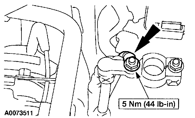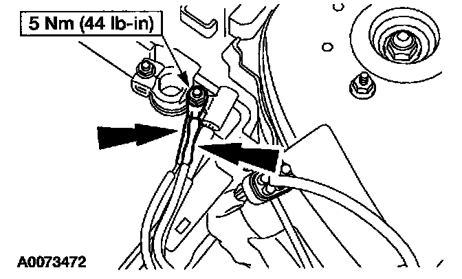 4. Remove the auxiliary battery terminal ground connection nut and separate the auxiliary battery cables from the ground cable end.