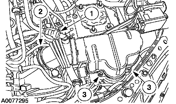 Install the three LH converter housing bolts.