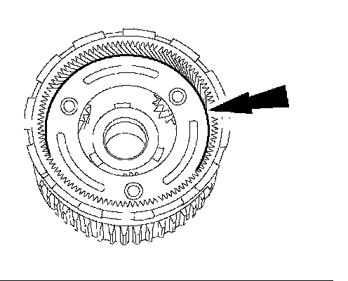 3. Make sure the low one-way clutch is installed with the tab pointing in the direction as shown.