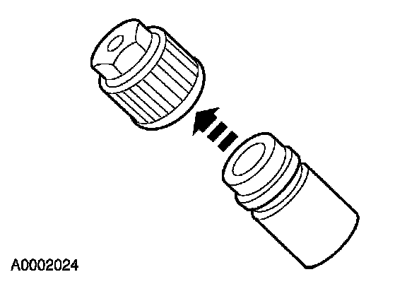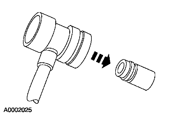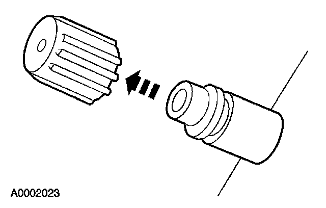 2. Remove the A/C charging valve cap from the low-pressure service gauge port valve.