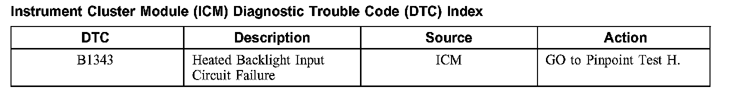 Instrument Cluster Module (ICM) Diagnostic Trouble Code Index