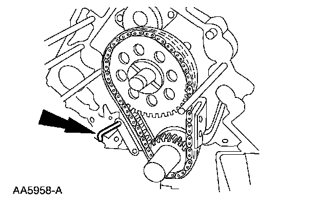 4. Compress and install a retaining pin to hold the timing chain tensioner.