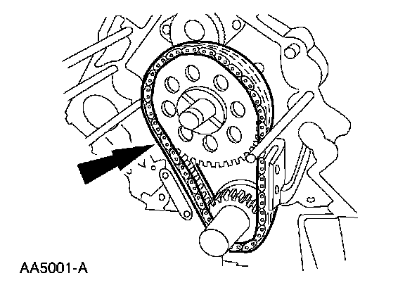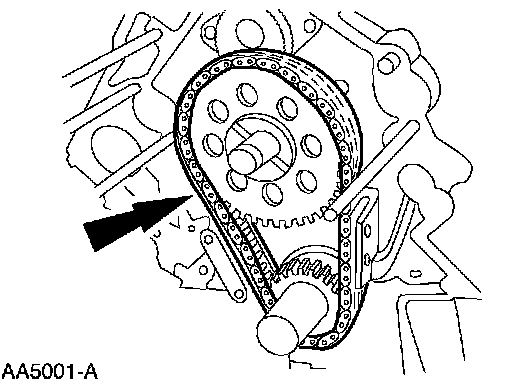 5. Install the timing chain, the camshaft sprocket and the crankshaft sprocket.